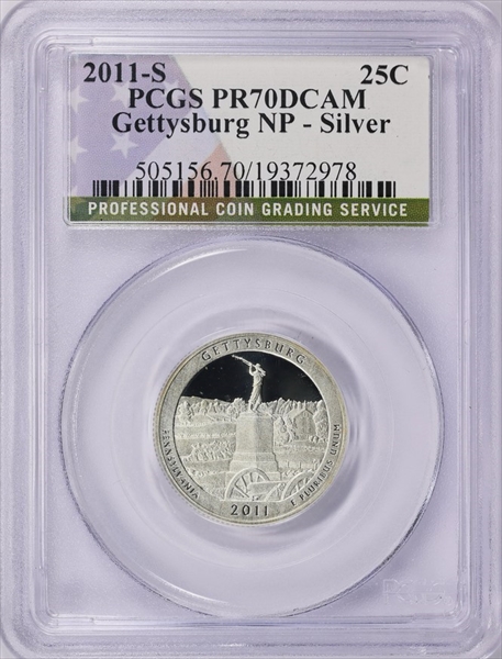 2011-S 25C Gettysburg NP - Silver, DCAM PR70DCAM Certification #19372978, PCGS #505156