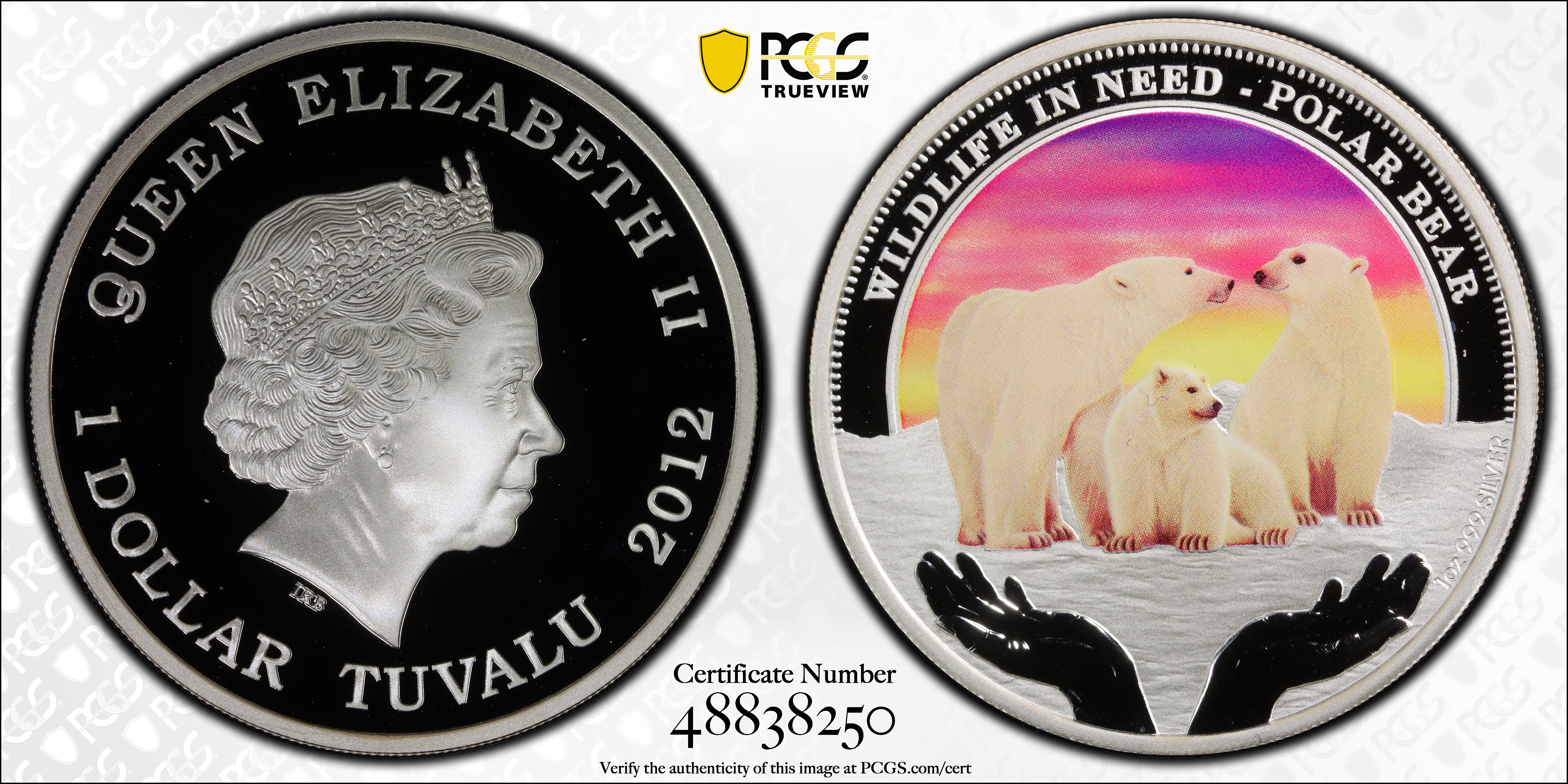 2012 $1 Polar Bear Wildlife in Need Colorized, DCAM PR69DCAM Certification #48838250, PCGS #513946