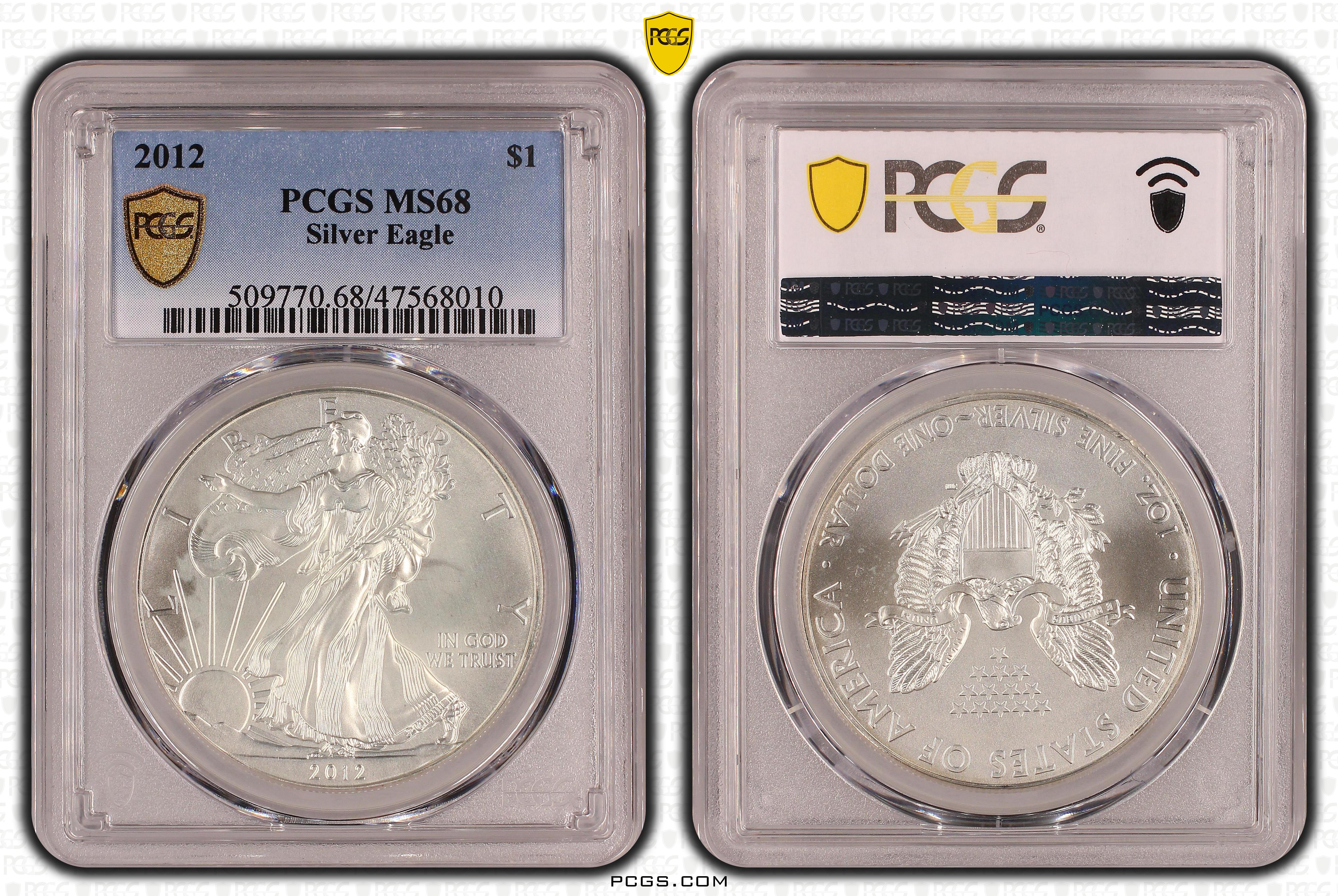 2012 $1 Silver Eagle MS68 Certification #47568010, PCGS #509770