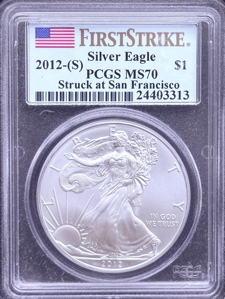 2012-(S) $1 Silver Eagle Struck at San Francisco First Strike MS70 Certification #24403313, PCGS #509811