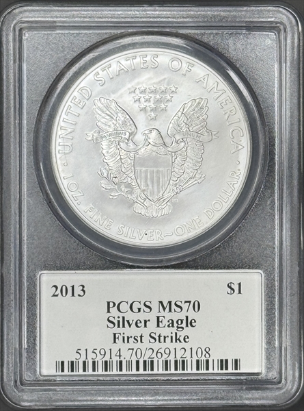 2013 $1 Silver Eagle First Strike MS70 Certification #26912108, PCGS #515914