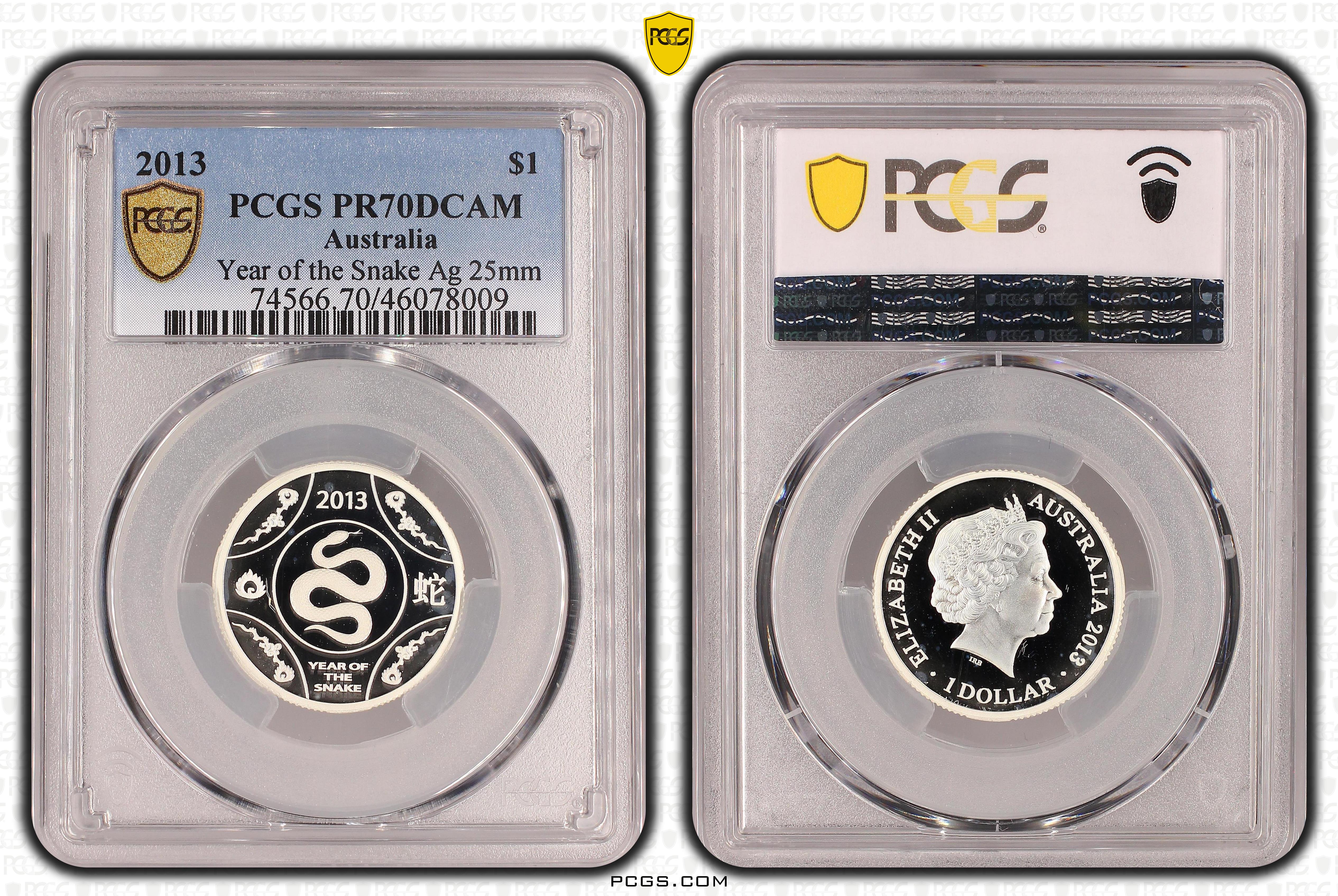 2013 $1 Year of the Snake Ag, DCAM PR70DCAM Certification #46078009, PCGS #74566