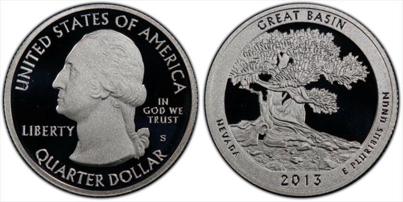 2013-S 25C Great Basin NP - Silver, DCAM PR70DCAM Certification #49503820, PCGS #516828