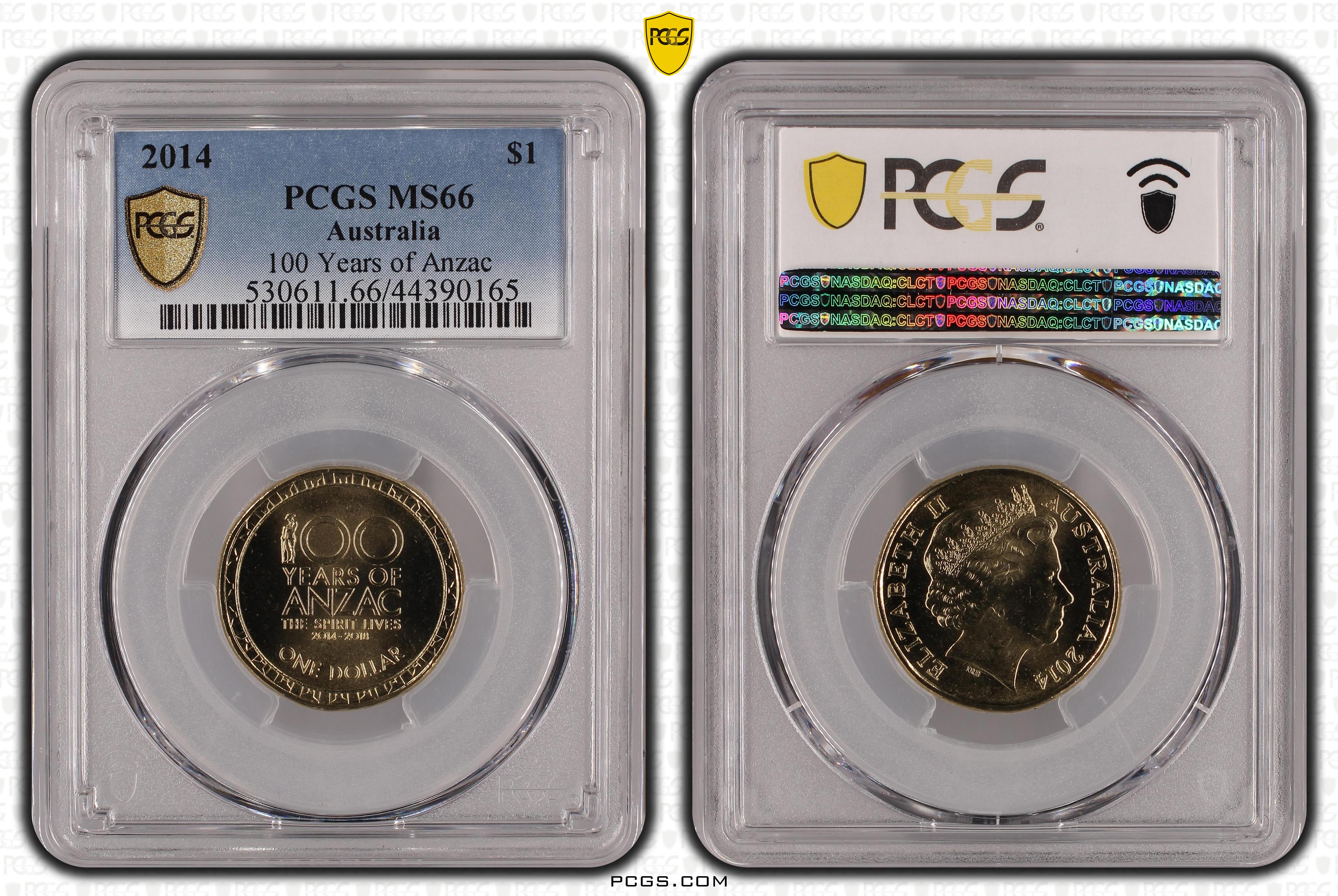 2014 $1 100 Years of Anzac MS66 Certification #44390165, PCGS #530611