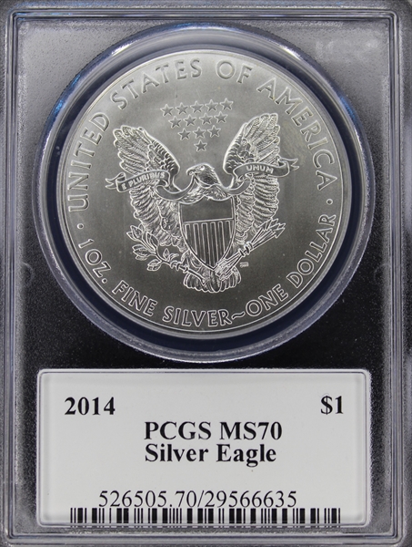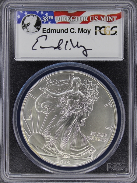 2014 $1 Silver Eagle Moy Signature MS70 Certification #29566635, PCGS #526505