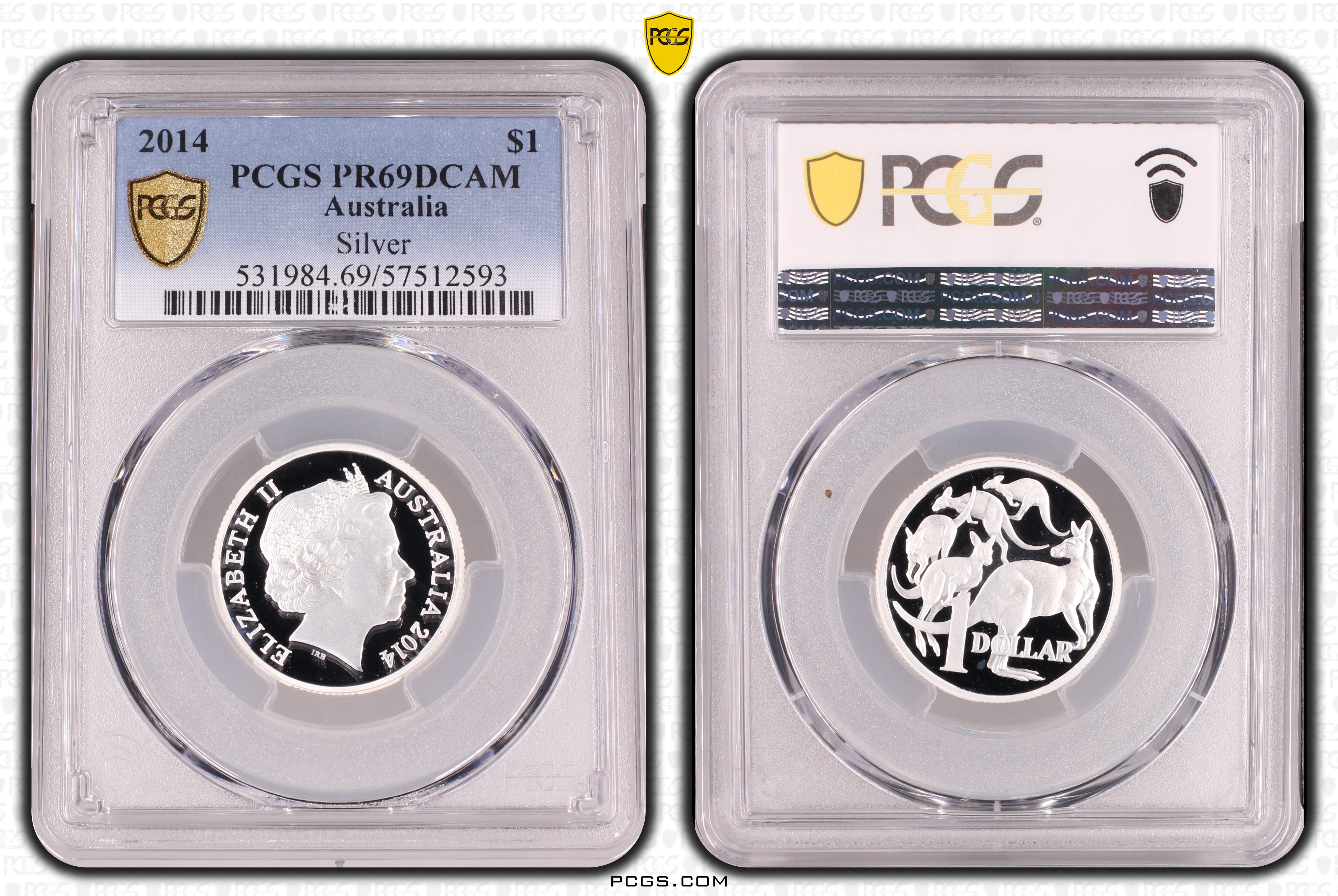 2014 $1 Silver, DCAM PR69DCAM Certification #57512593, PCGS #531984