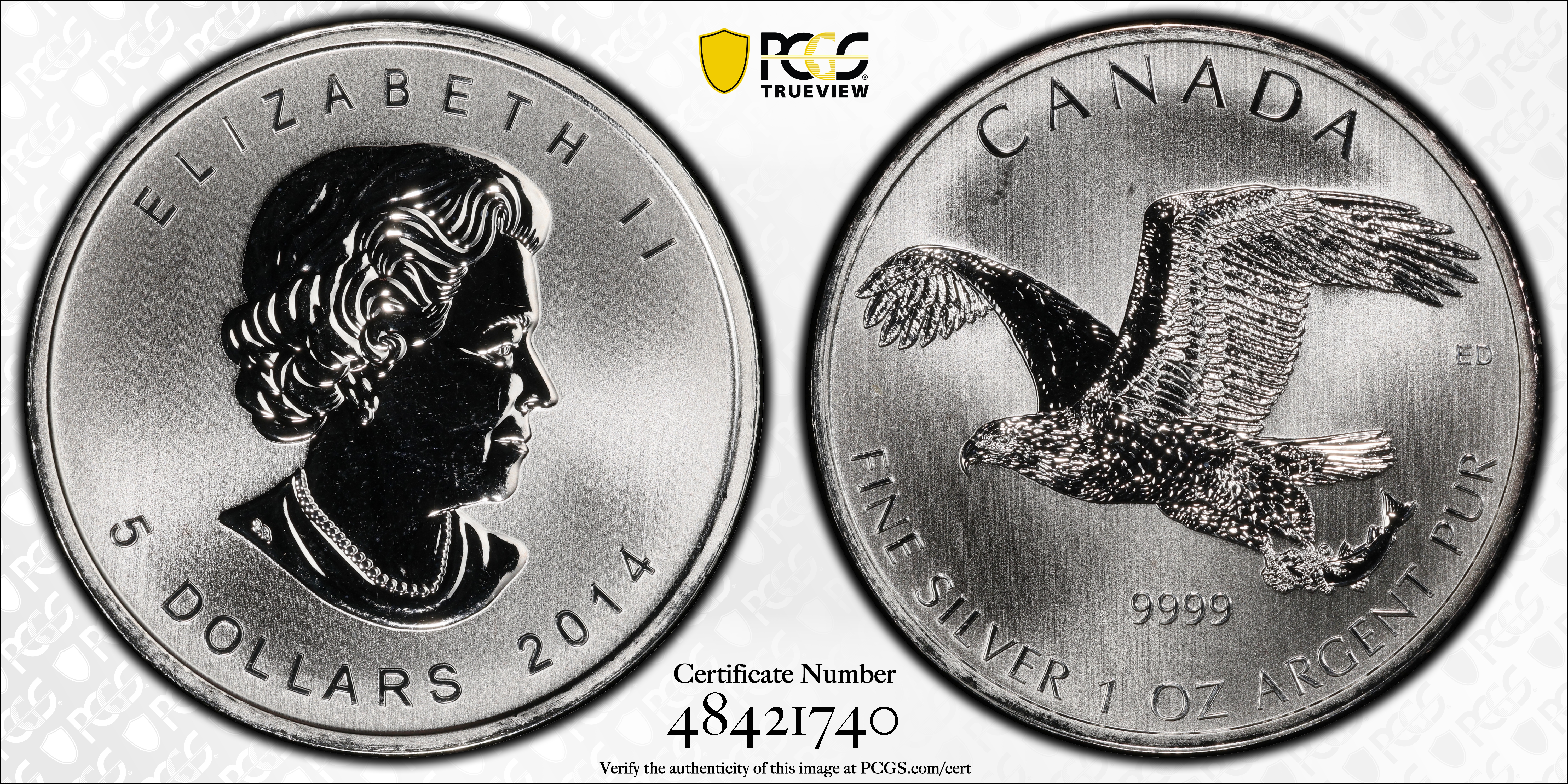 2014 $5 Bald Eagle MS69 Certification #48421740, PCGS #533250