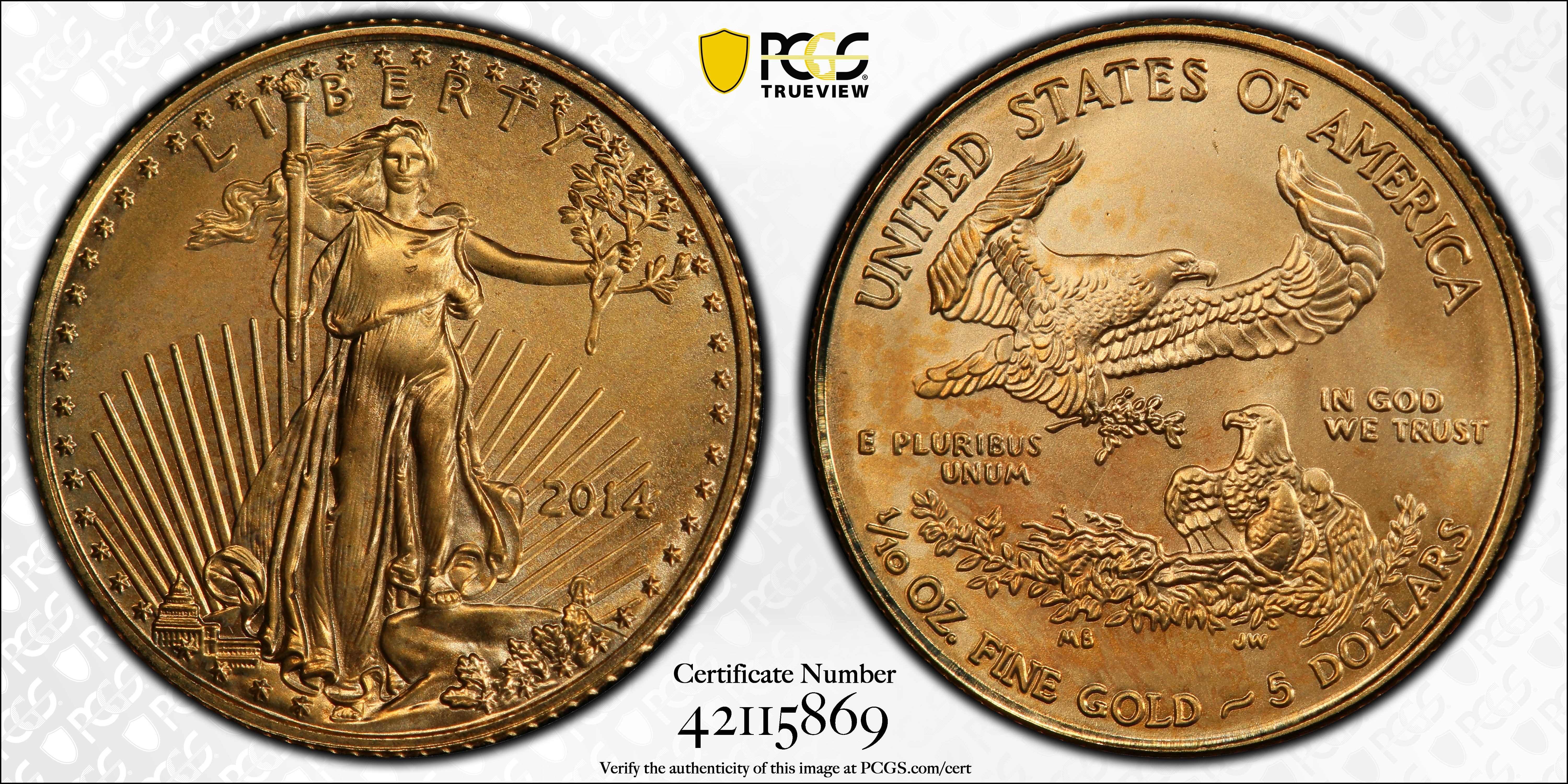 2014 $5 Gold Eagle MS68 Certification #42115869, PCGS #521914