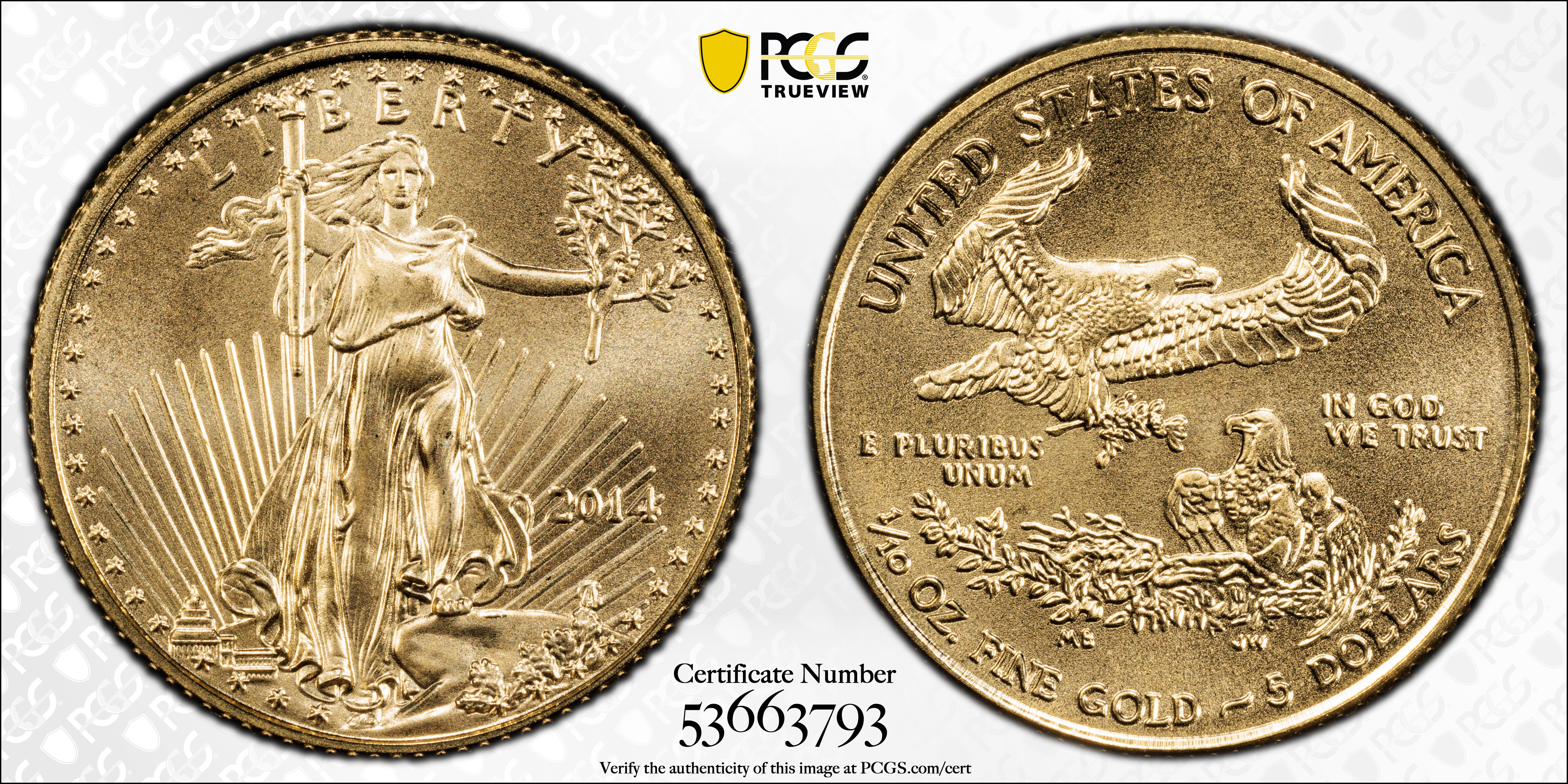 2014 $5 Gold Eagle MS70 Certification #53663793, PCGS #521914