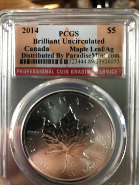 2014 $5 Maple Leaf/Ag BU89 Certification #33926053, PCGS #523444