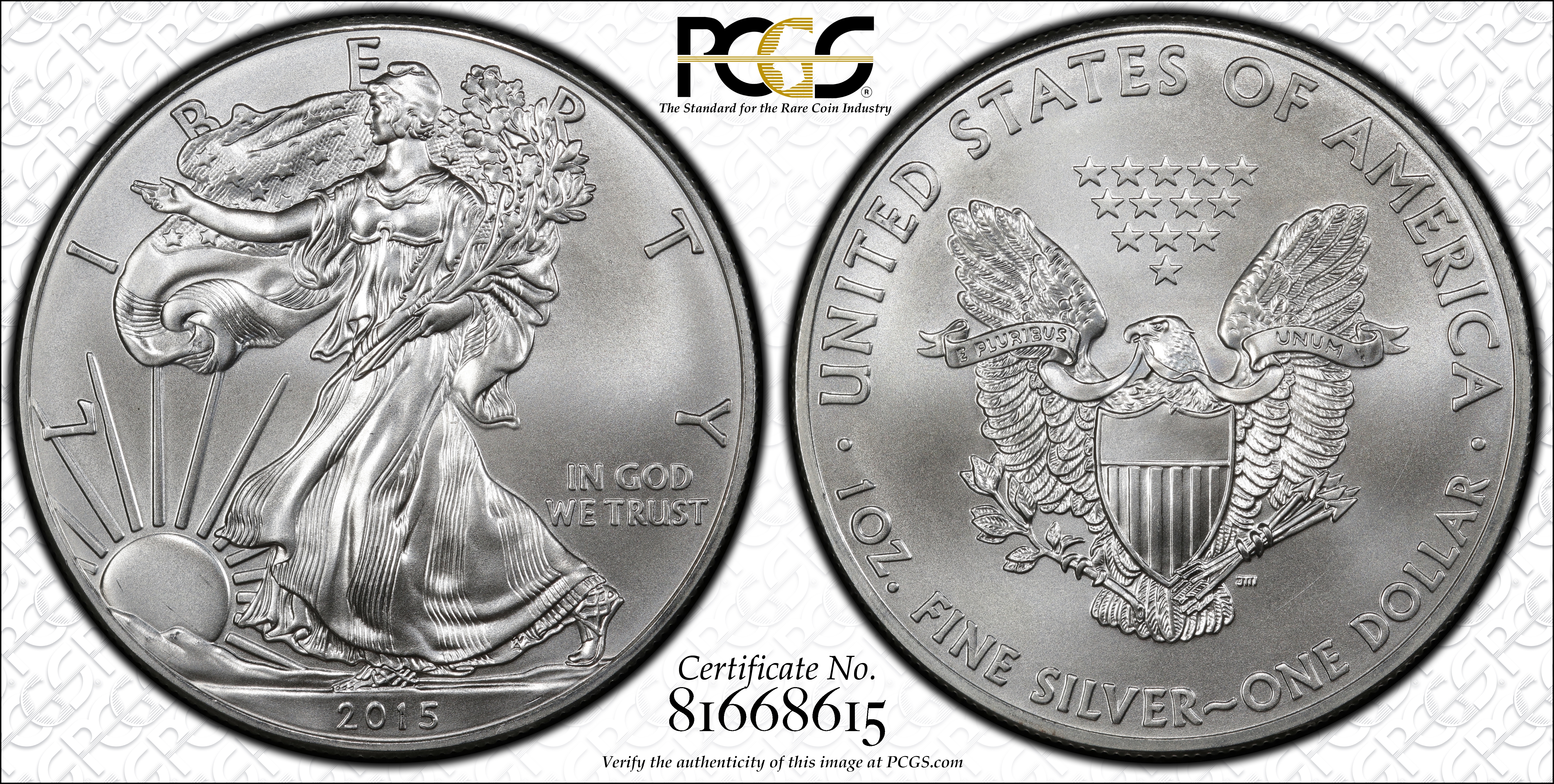 2015 $1 Silver Eagle MS68 Certification #81668615, PCGS #535696