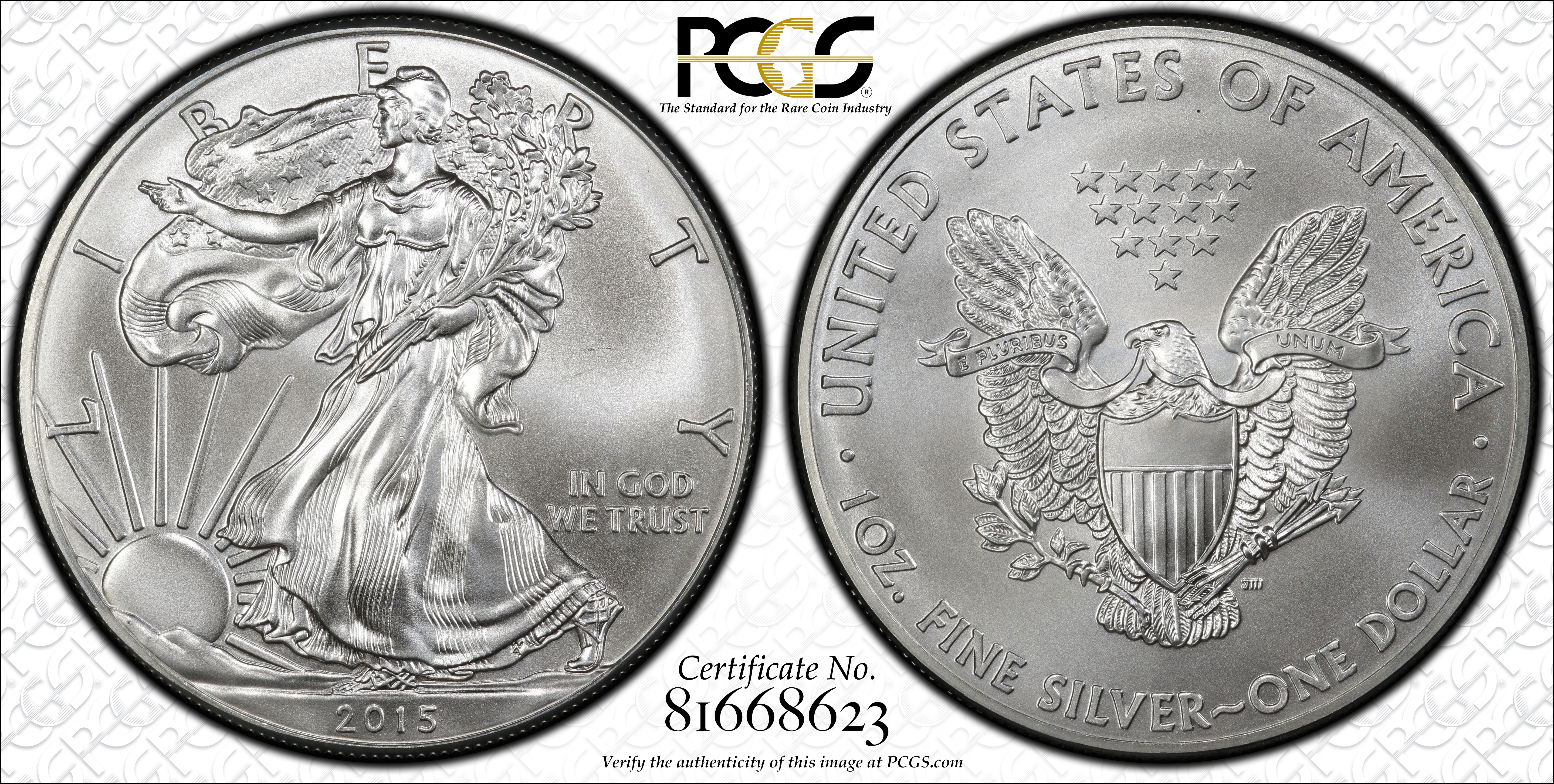 2015 $1 Silver Eagle MS66 Certification #81668623, PCGS #535696