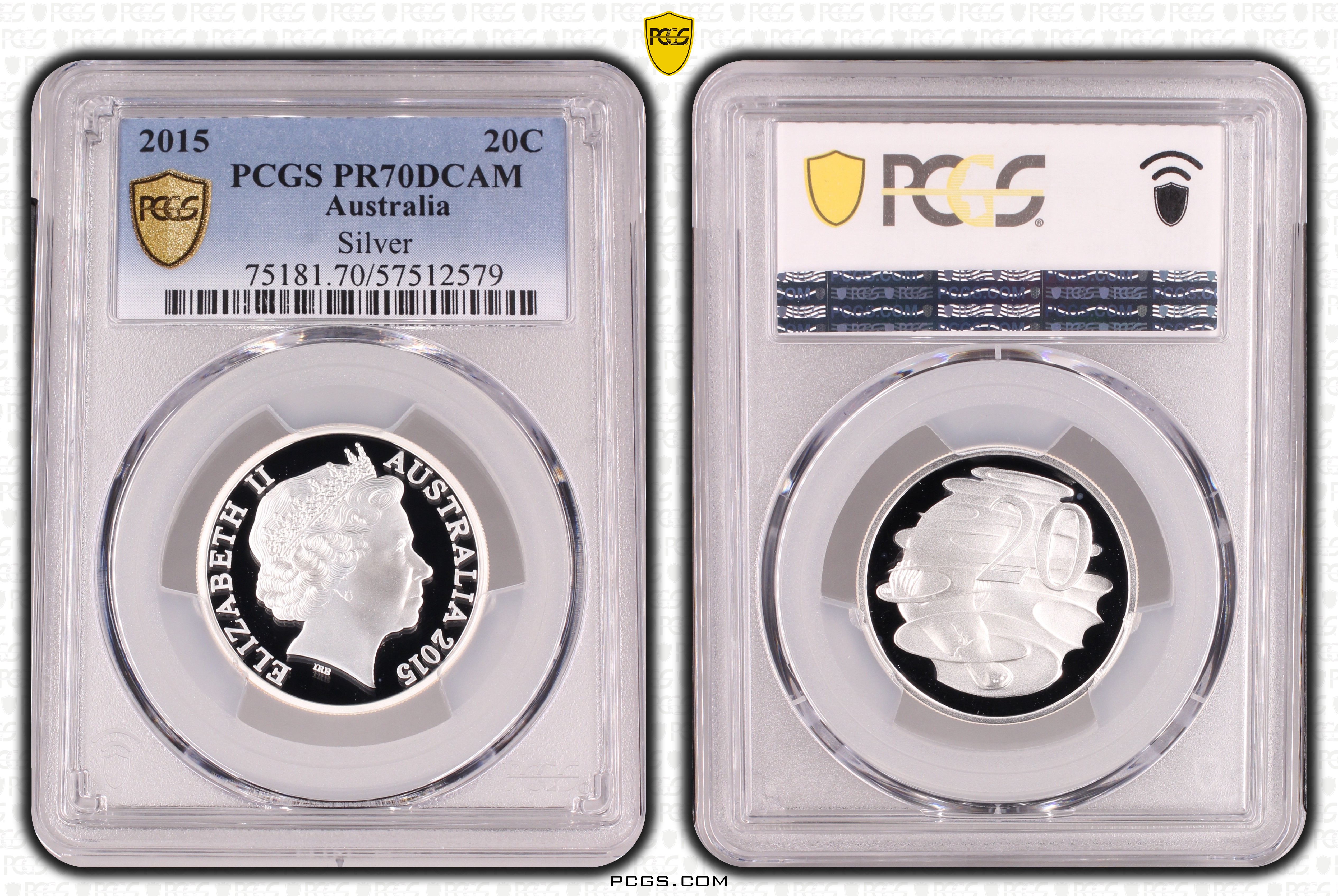 2015 20C Silver, DCAM PR70DCAM Certification #57512579, PCGS #75181
