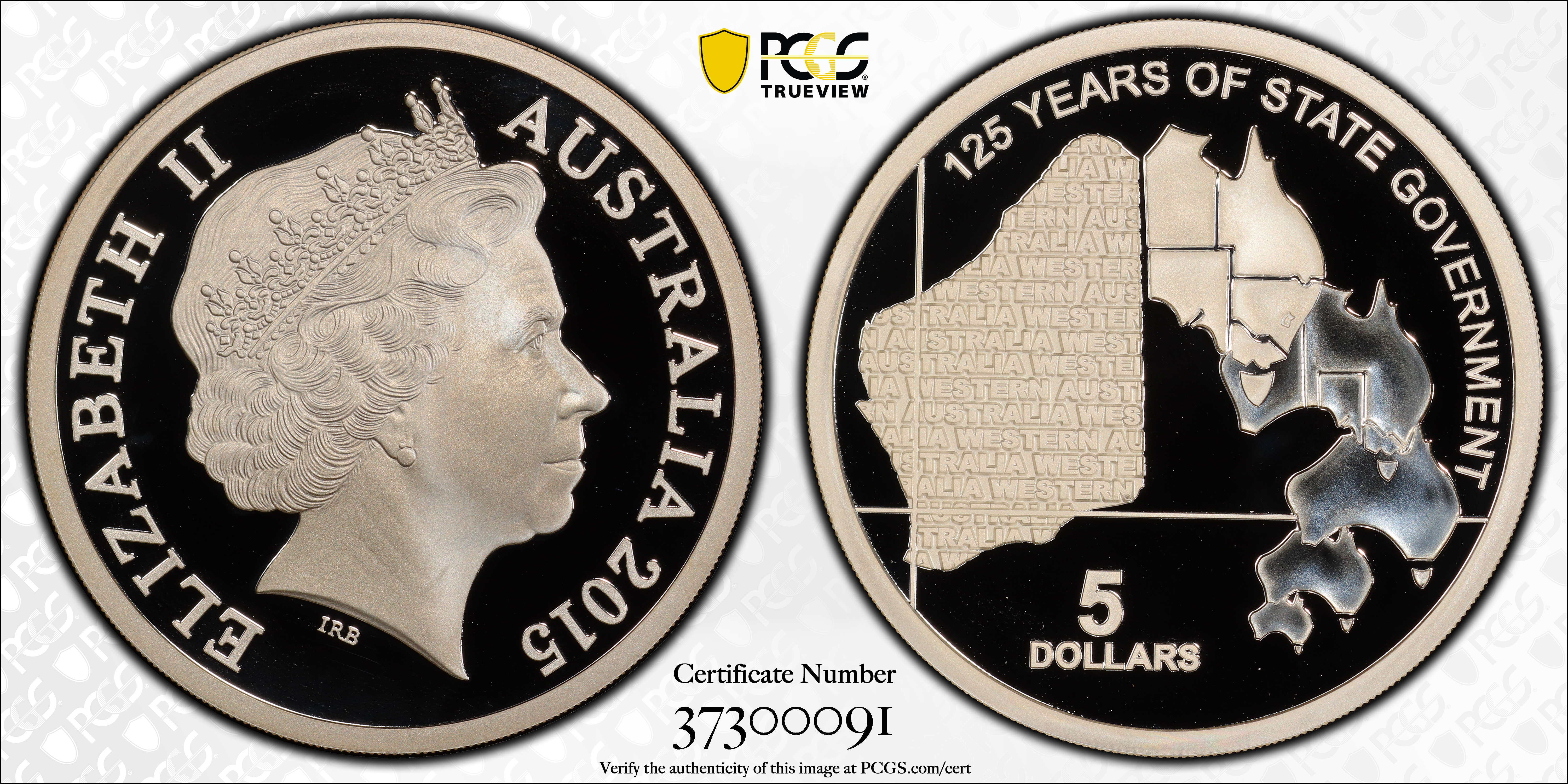 2015 $5 125 Years State Government, DCAM PR70DCAM Certification #37300091, PCGS #745198