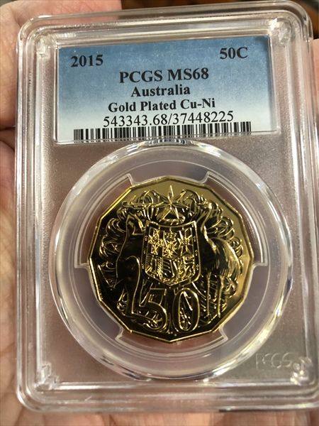2015 50C Gilt Cu-Ni MS68 Certification #37448225, PCGS #543343