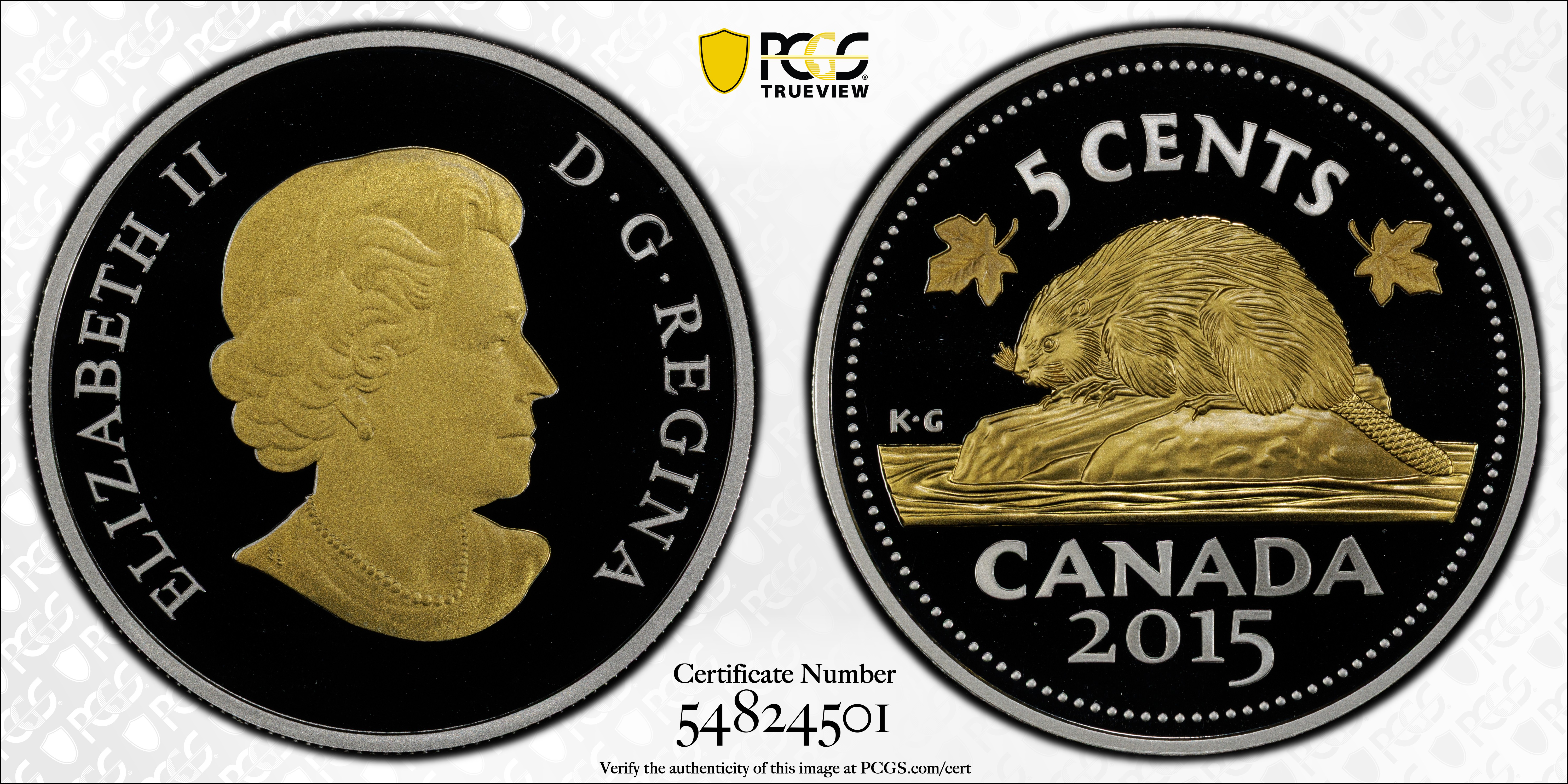2015 5C Kruger Gray's Beaver Select Gilt, DCAM PR69DCAM Certification #54824501, PCGS #76353