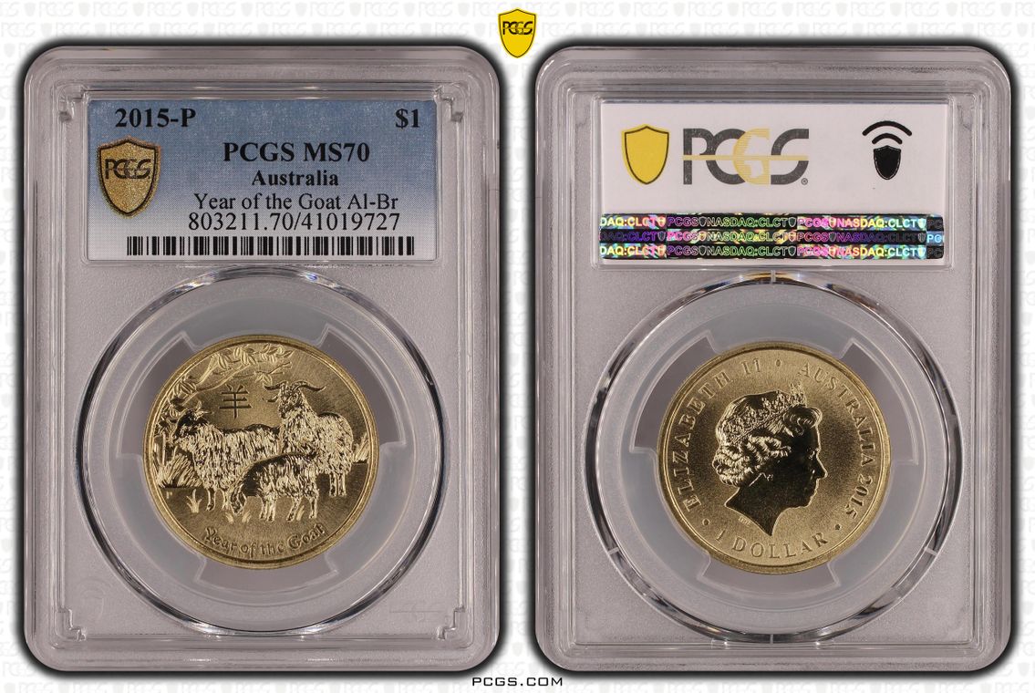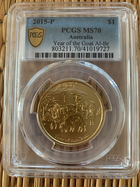 2015-P $1 Year of the Goat Al-Br MS70 Certification #41019727, PCGS #803211