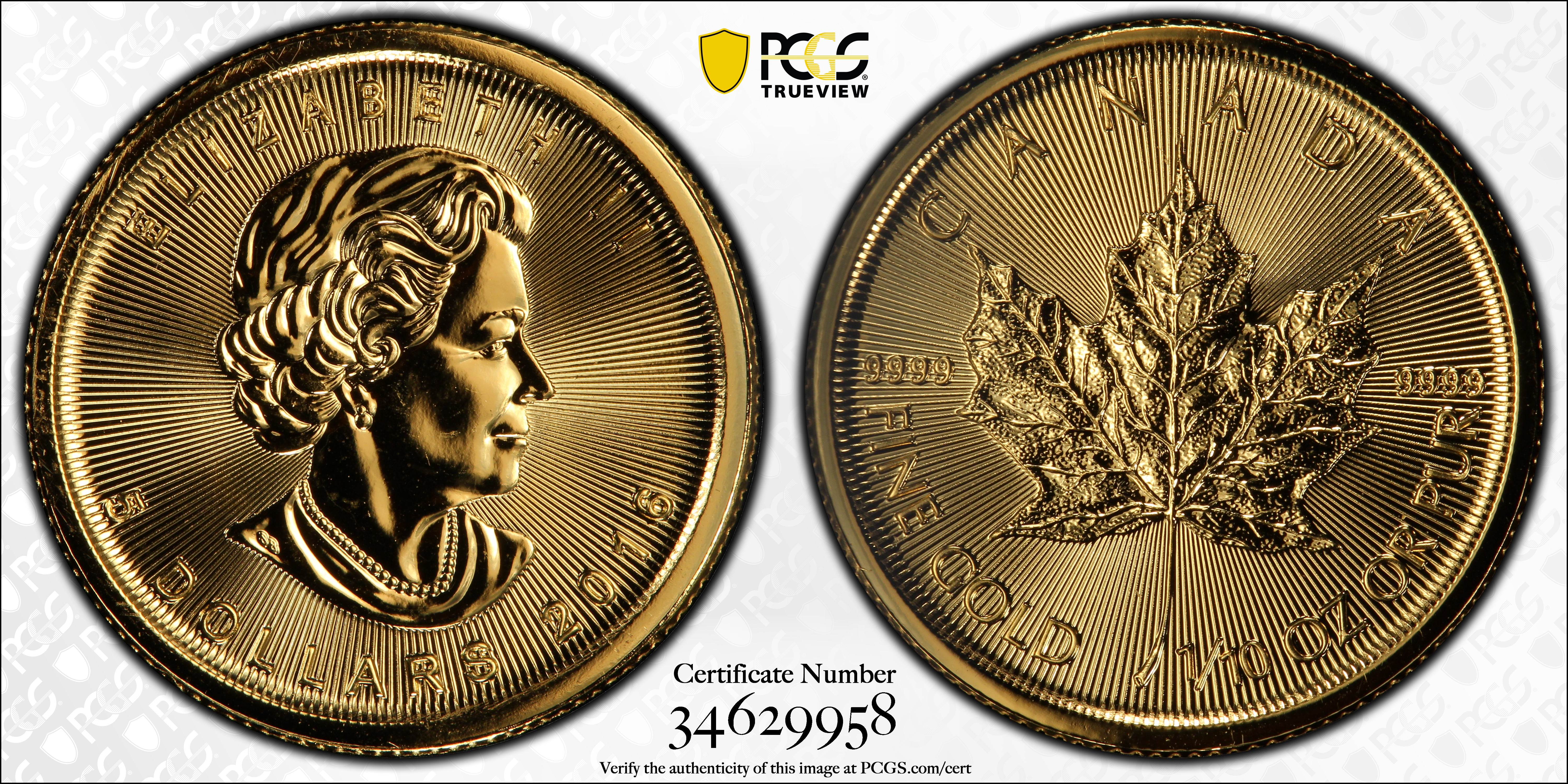 2016 $5 Maple Leaf Au MS69 Certification #34629958, PCGS #599830