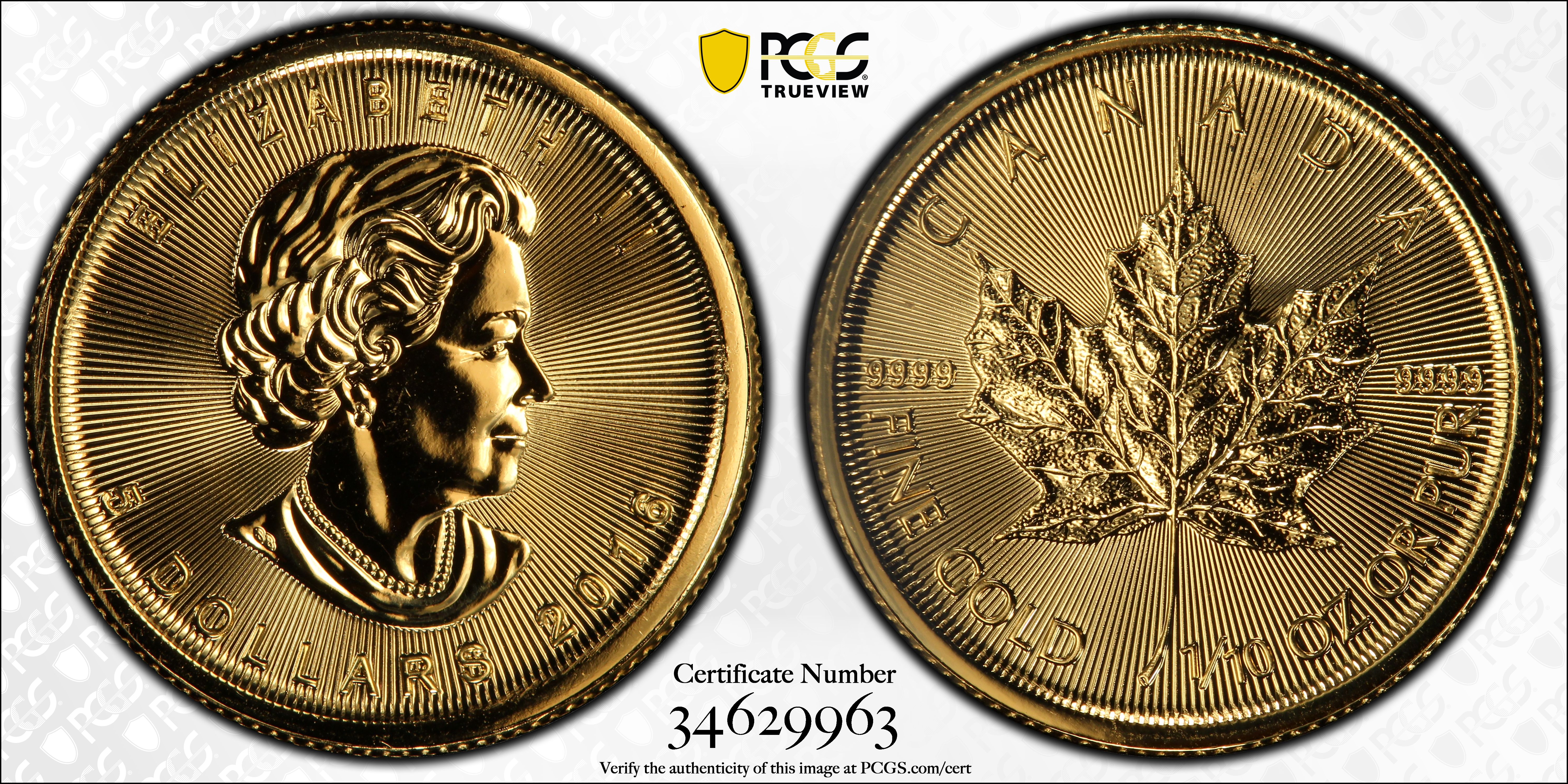 2016 $5 Maple Leaf Au MS69 Certification #34629963, PCGS #599830