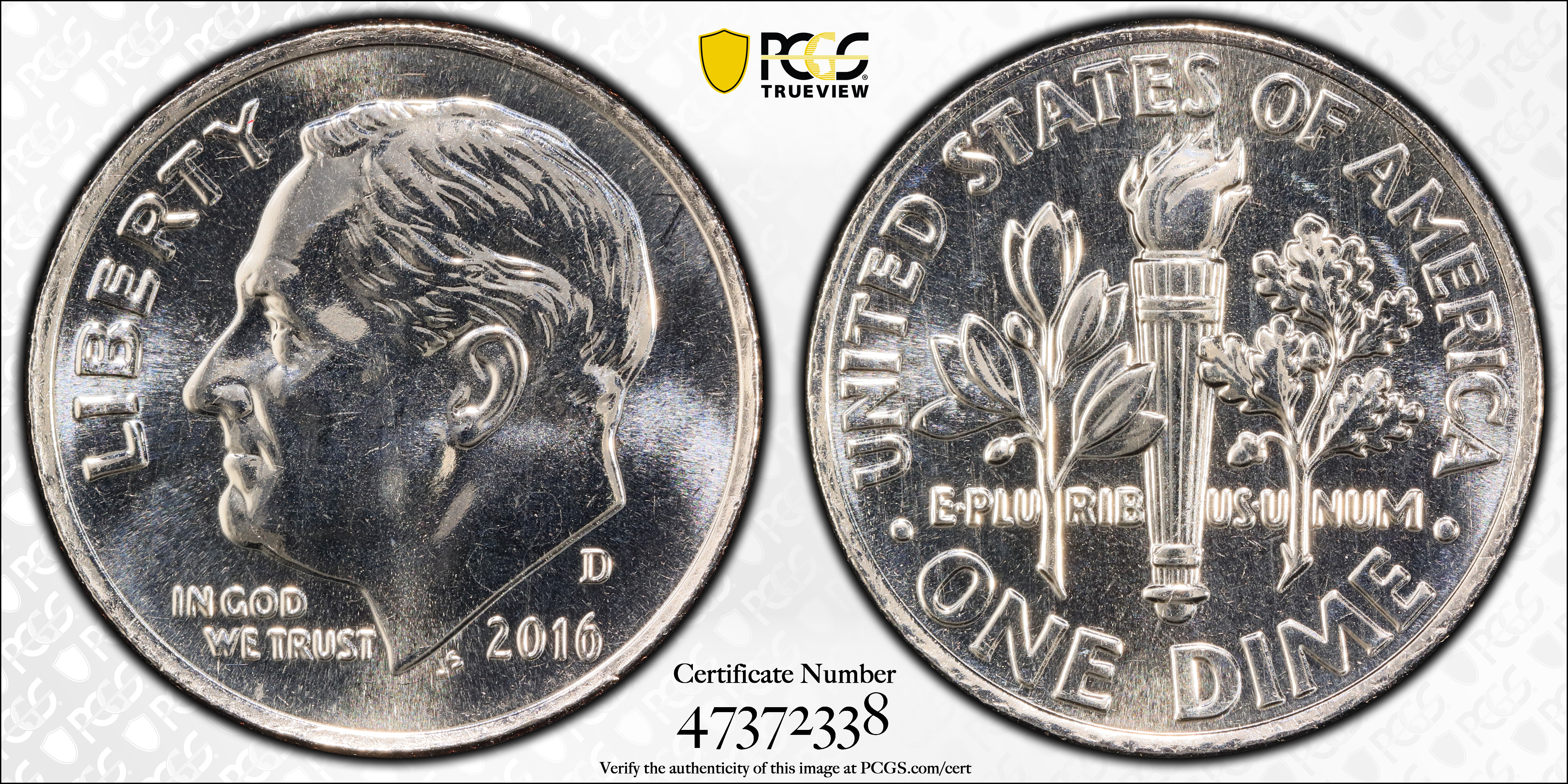 2016-D 10C, FB MS67FB Certification #47372338, PCGS #606625