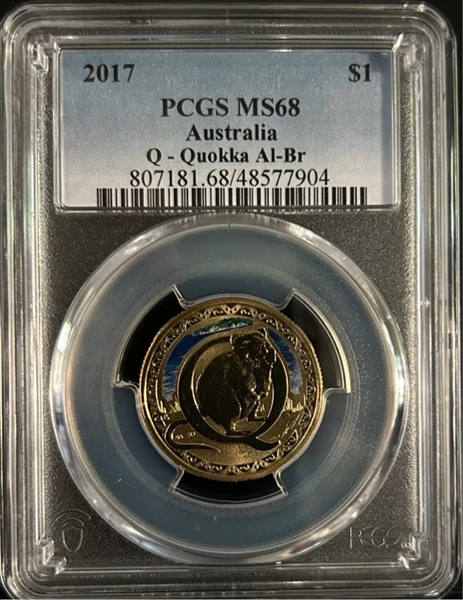 2017 $1 Q - Quokka Al-Br Colorized MS68 Certification #48577904, PCGS #807181