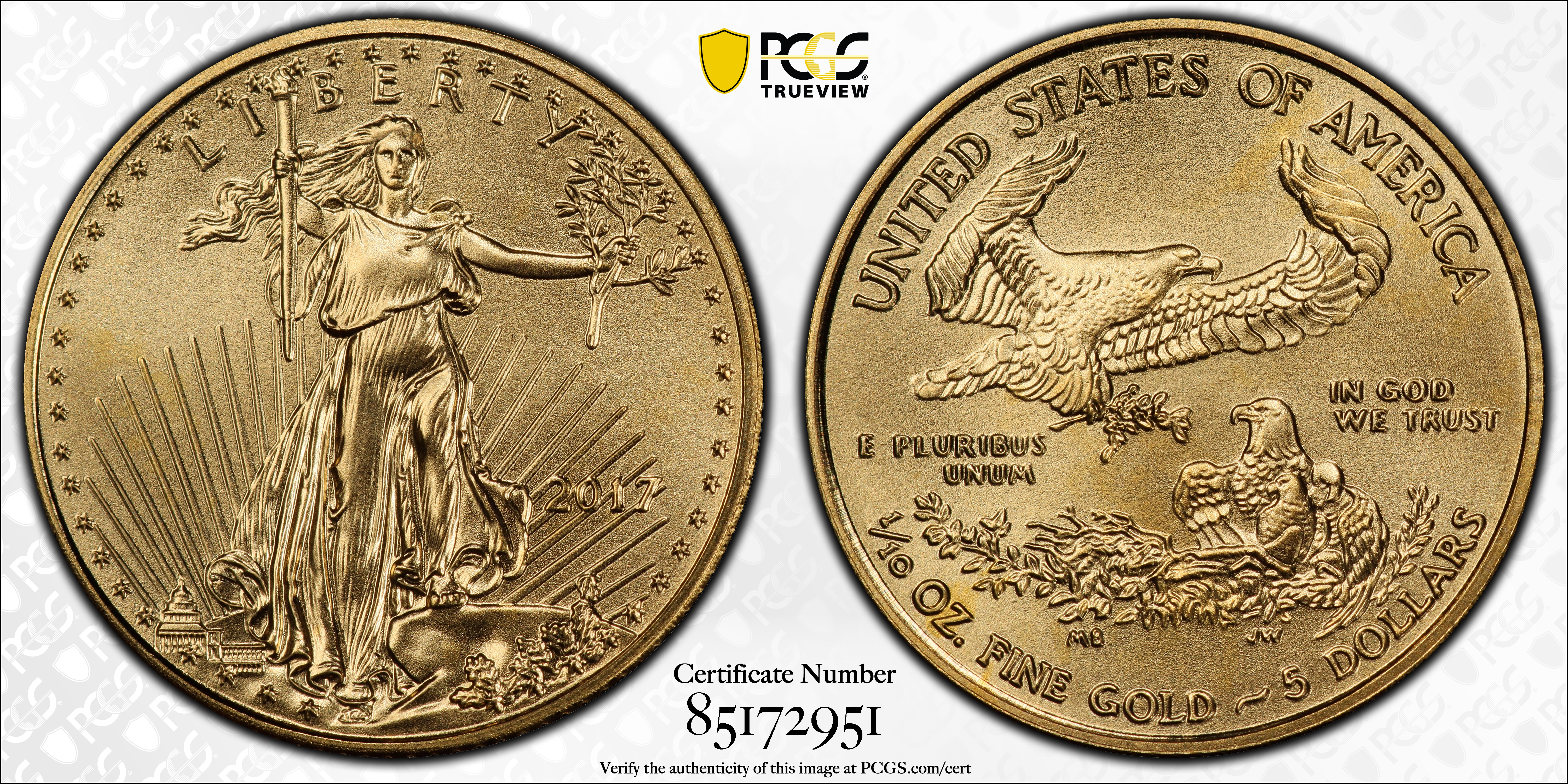 2017 $5 Gold Eagle MS70 Certification #85172951, PCGS #616716