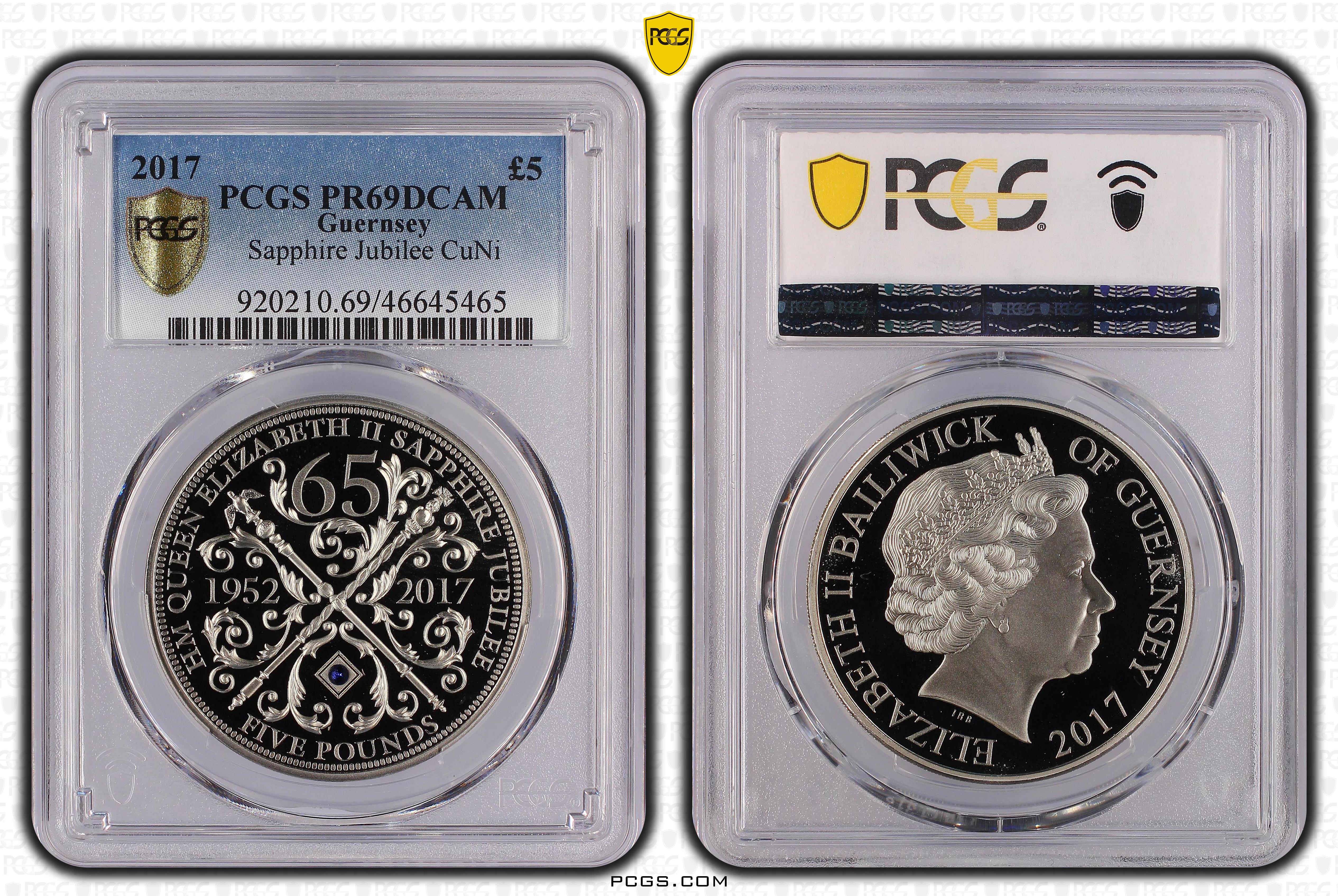 2017 £5 Sapphire Jubilee CuNi, DCAM PR69DCAM Certification #46645465, PCGS #920210