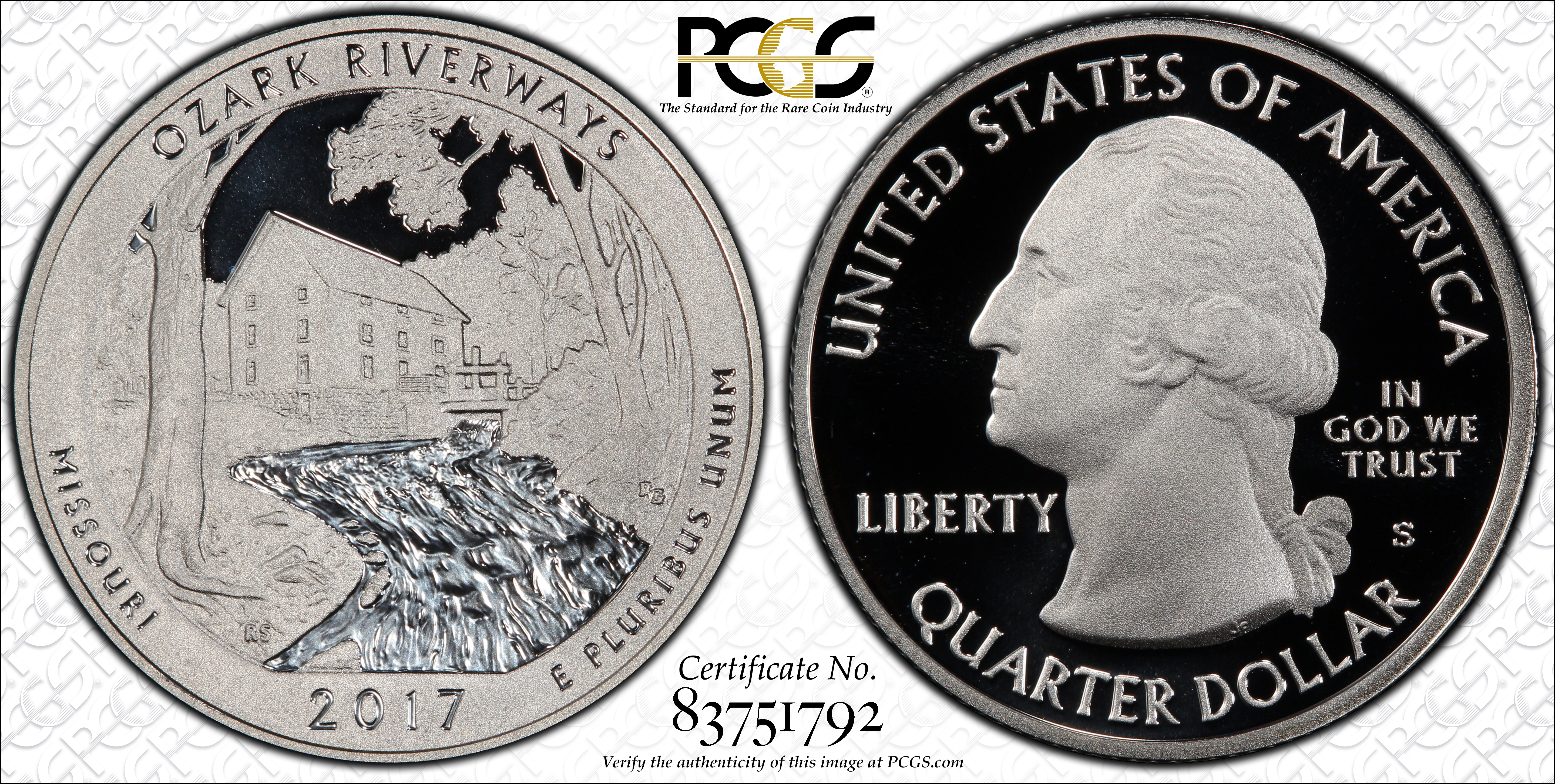 2017-S 25C Ozark NP, DCAM PR70DCAM Certification #83751792, PCGS #620328