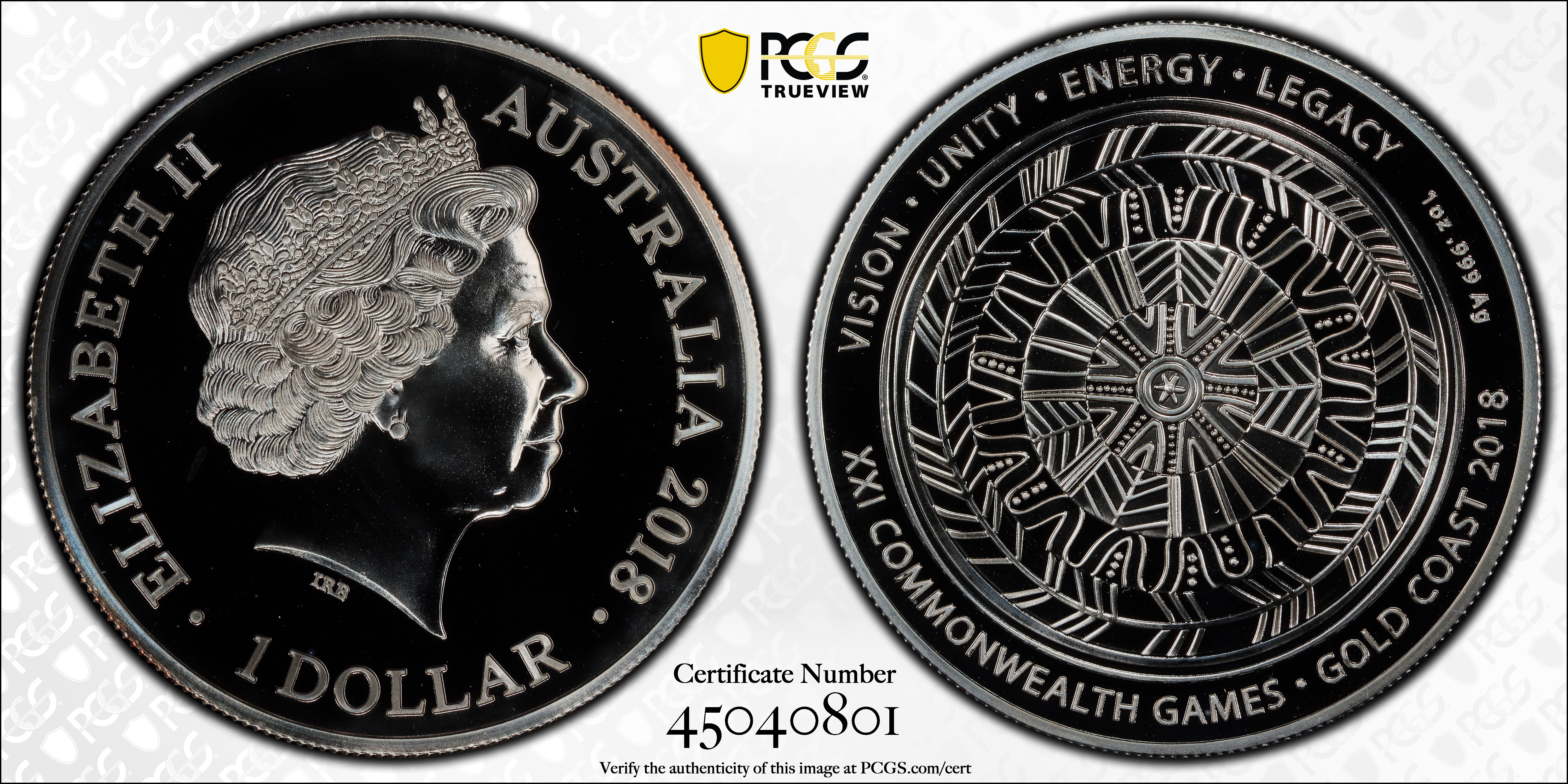 2018 $1 Commonwealth Games Legacy of Reconciliation MS68 Certification #45040801, PCGS #881574