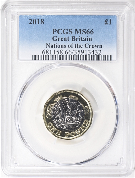 2018 £1 S-J39 Nations of the Crown MS66 Certification #35913432, PCGS #681158