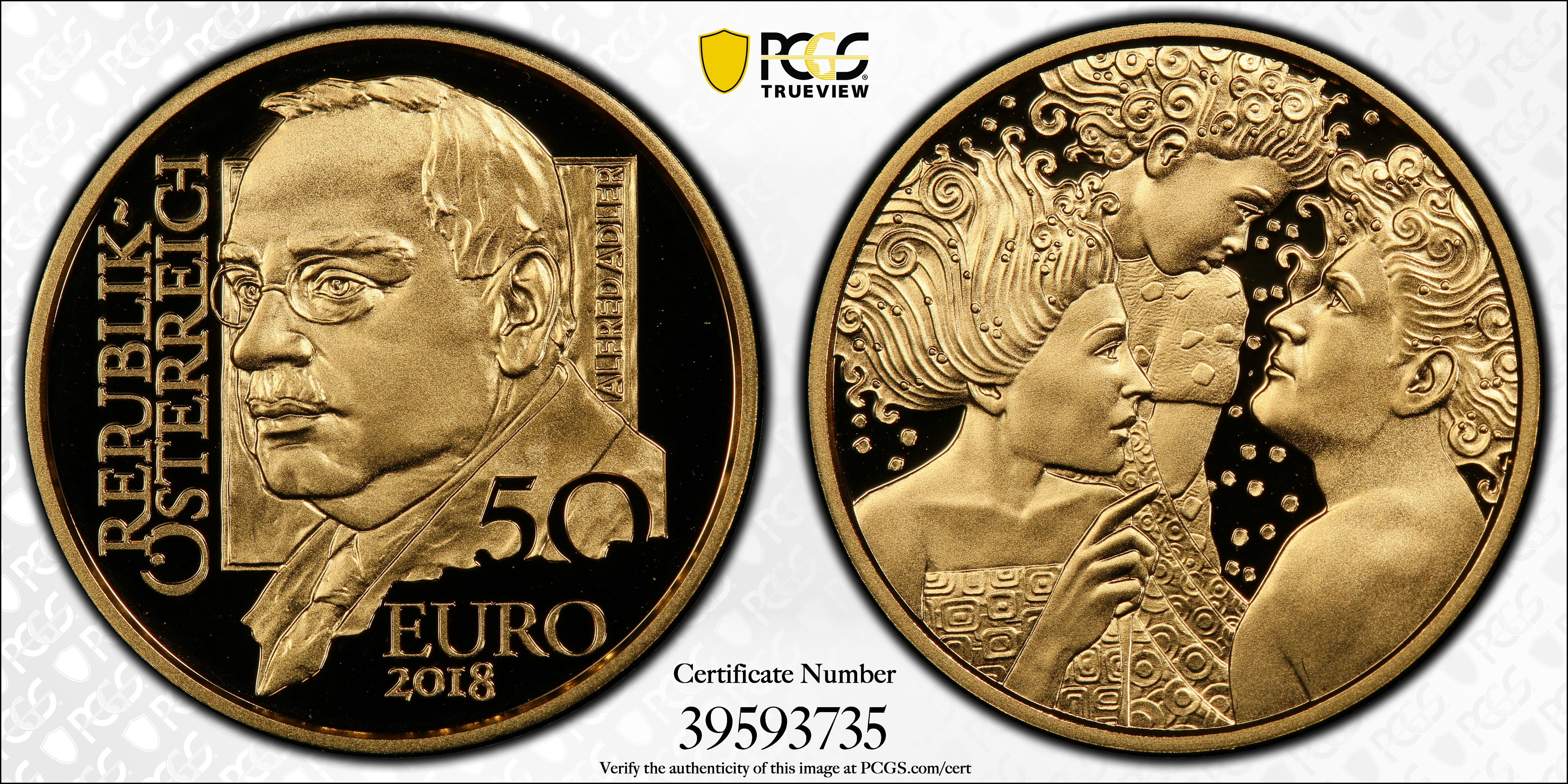 2018 € 50 Alfred Adler, DCAM PR70DCAM Certification #39593735, PCGS #822367