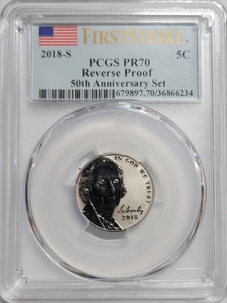 2018-S 5C Reverse Proof 50th Anniversary Set First Strike PR70 Certification #36866234, PCGS #679897