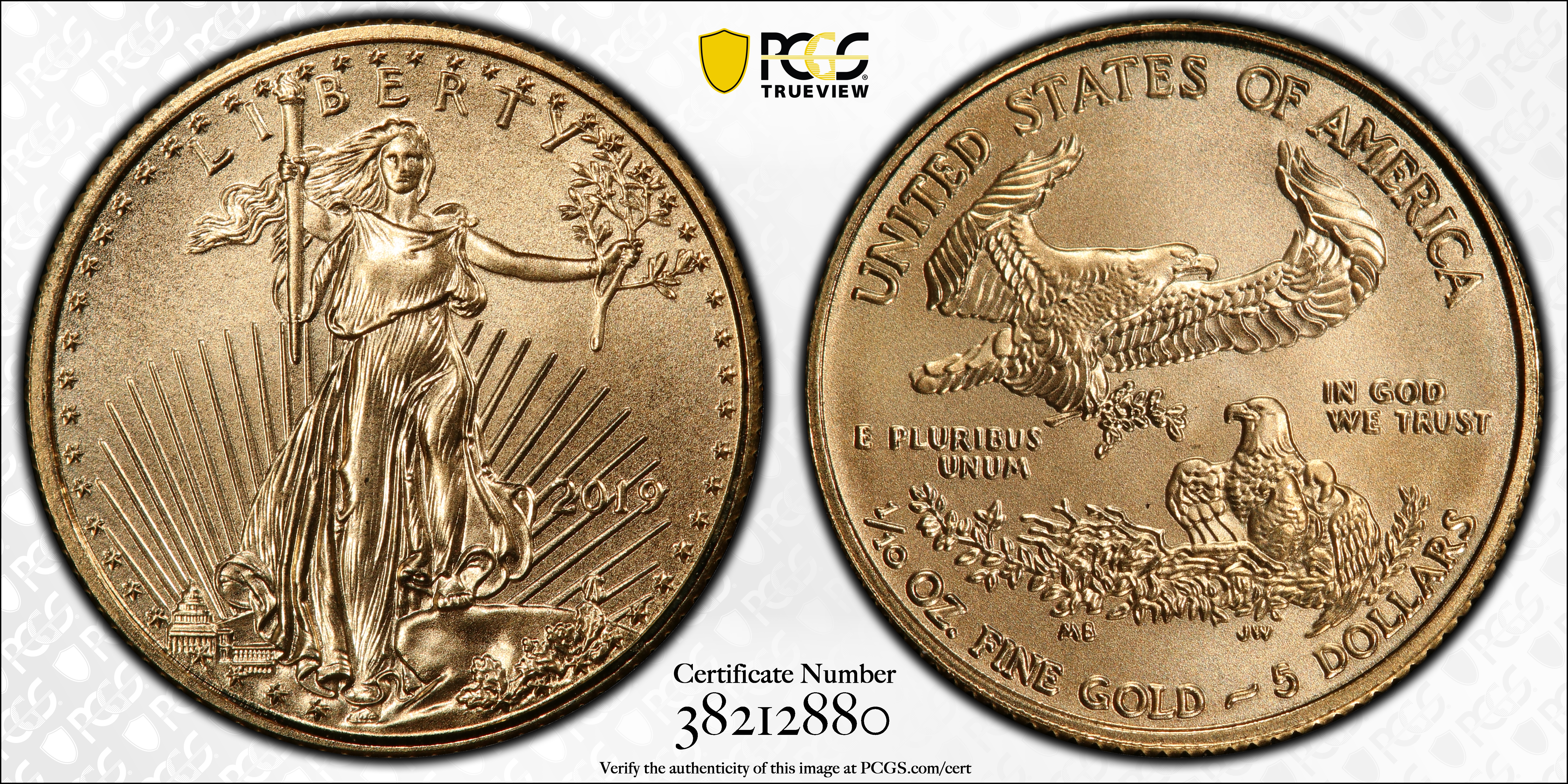 2019 $5 Gold Eagle MS70 Certification #38212880, PCGS #694855