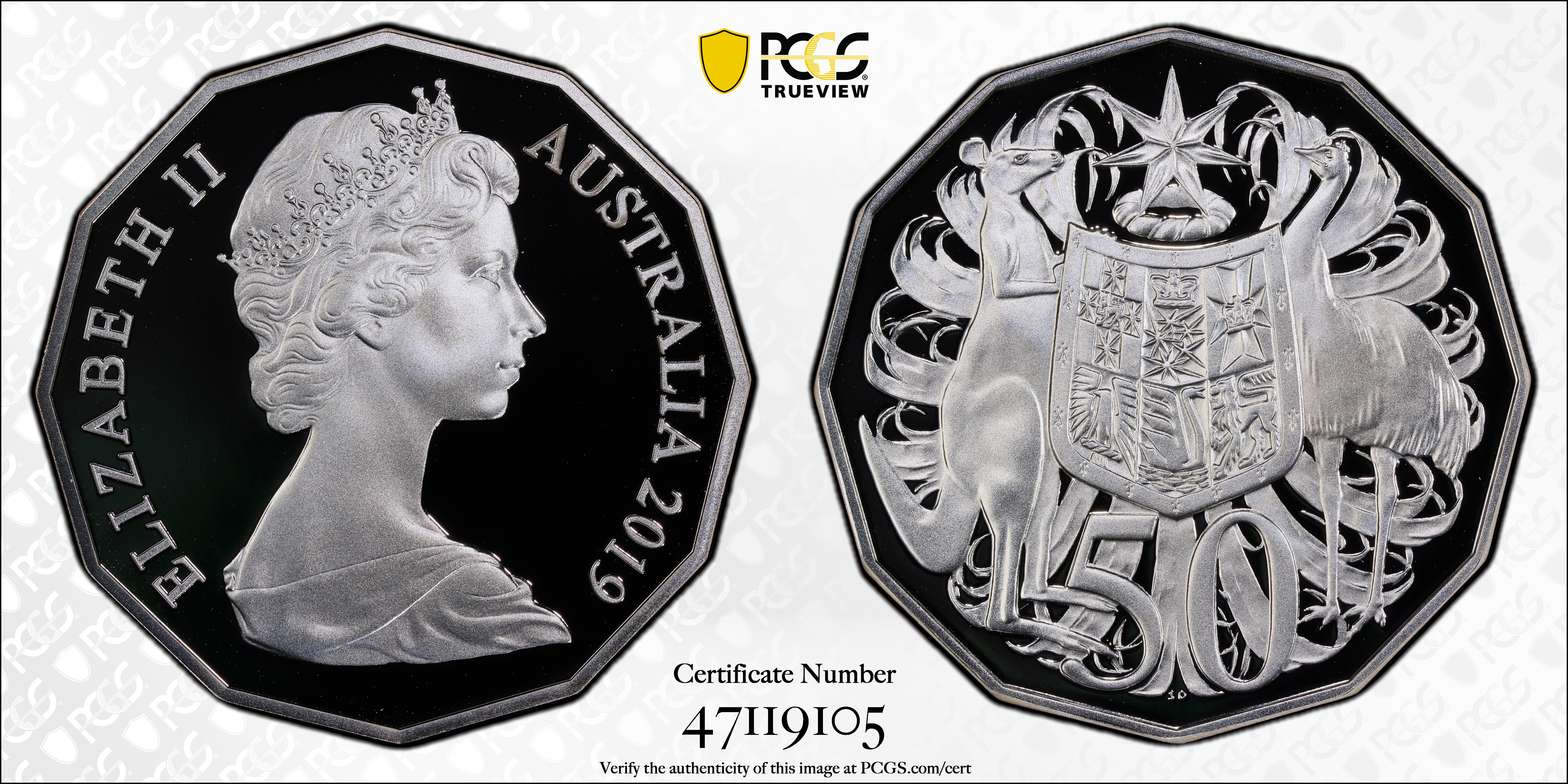 2019 50C Dodecagon 50C 50th Ann. Ag A. Machin Effigy, DCAM PR70DCAM Certification #47119105, PCGS #802663