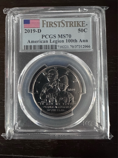 2019-D 50C American Legion 100th Ann First Strike MS70 Certification #37312066, PCGS #710221