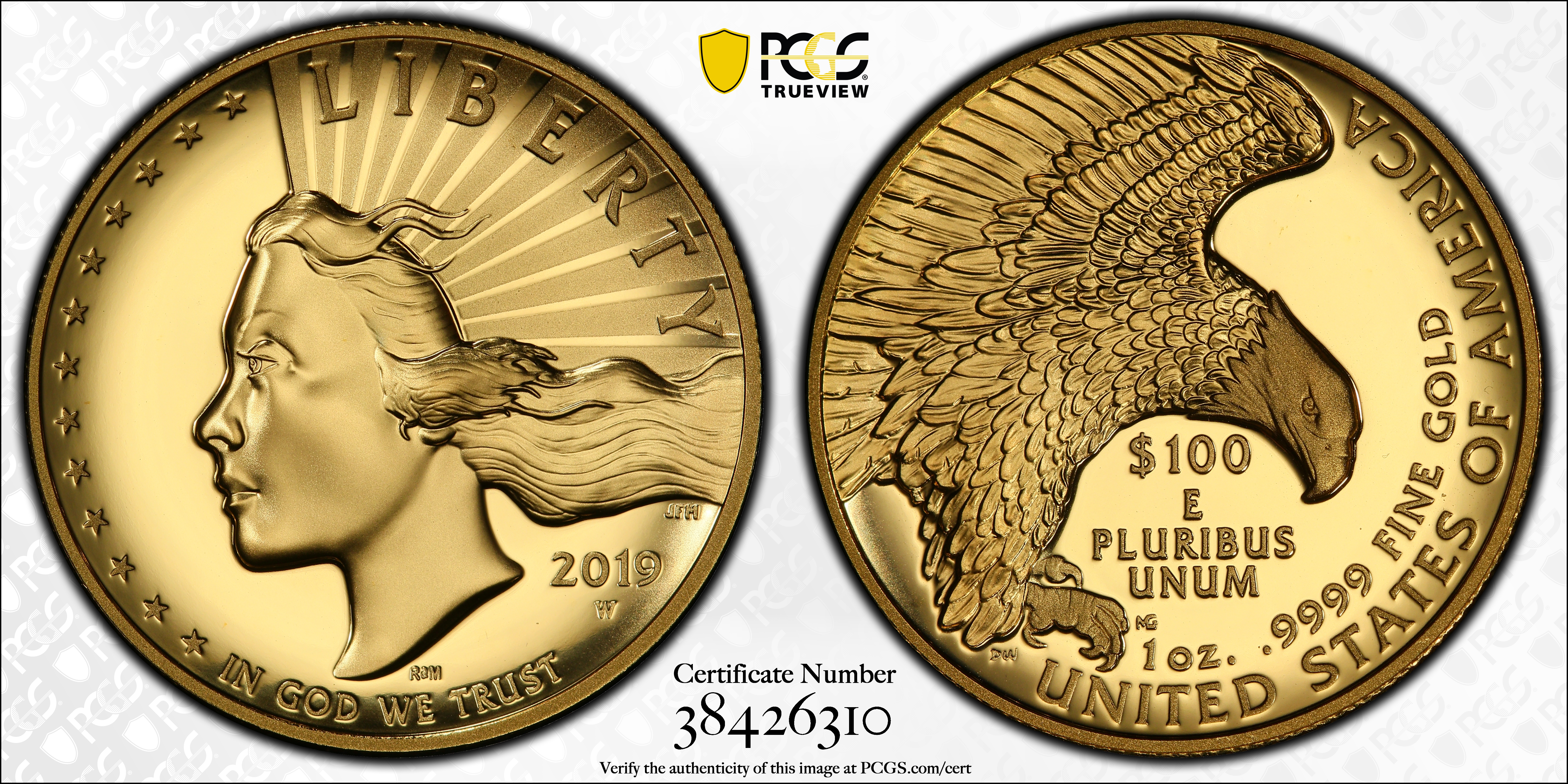 2019-W $100 High Relief Enhanced .9999 Fine First Strike, PL SP69PL Certification #38426310, PCGS #801648