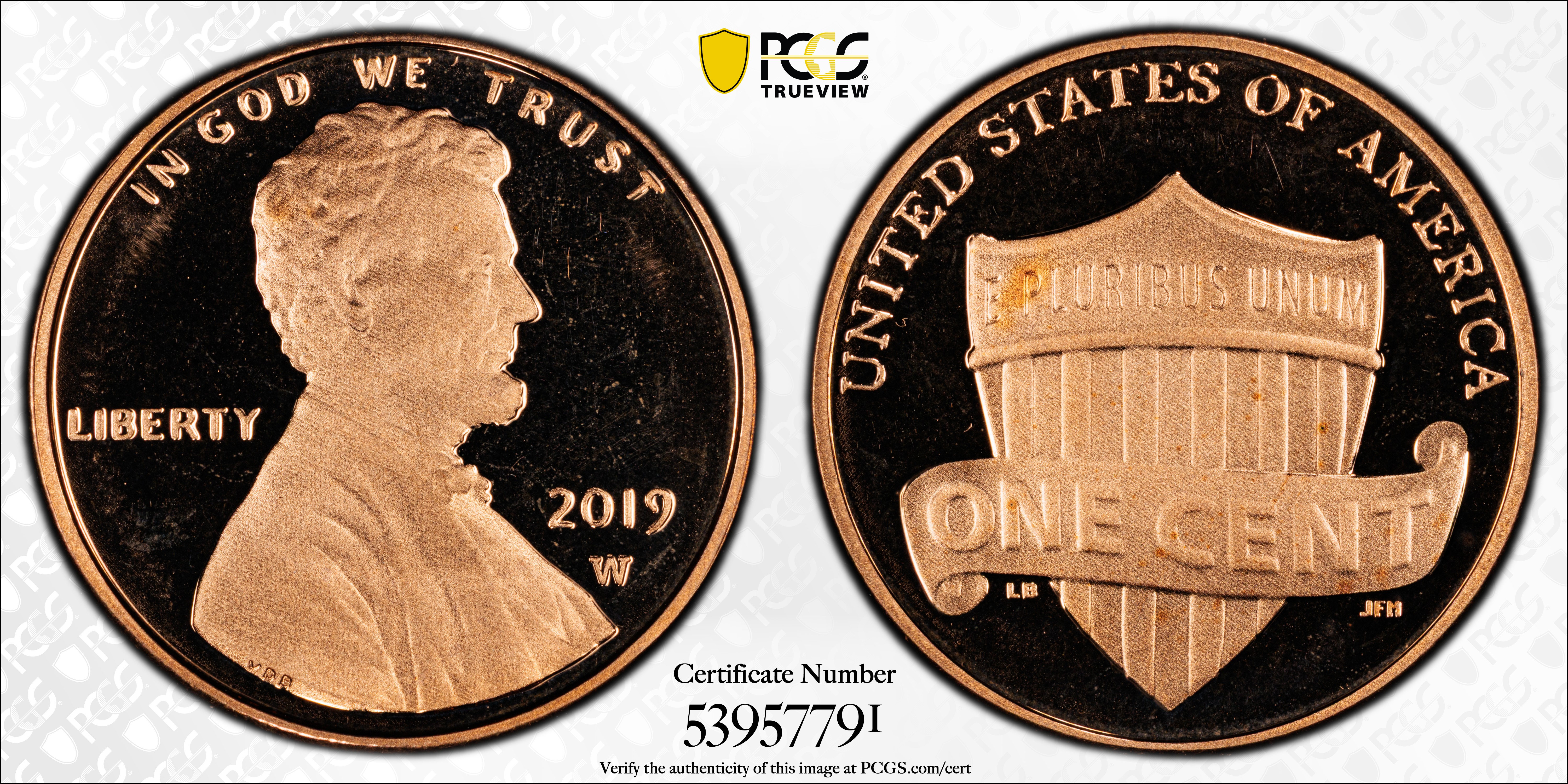 2019-W 1C Shield, DCAM PR68DCAM Certification #53957791, PCGS #702280