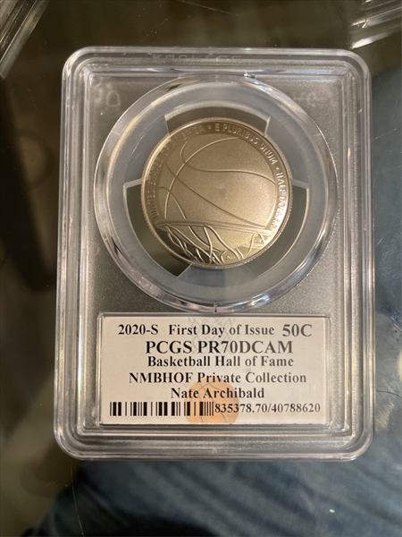2020-S 50C Basketball Hall of Fame First Day of Issue NMBHOF Private Collection Nate Archibald, DCAM PR70DCAM Certification #40788620, PCGS #835378