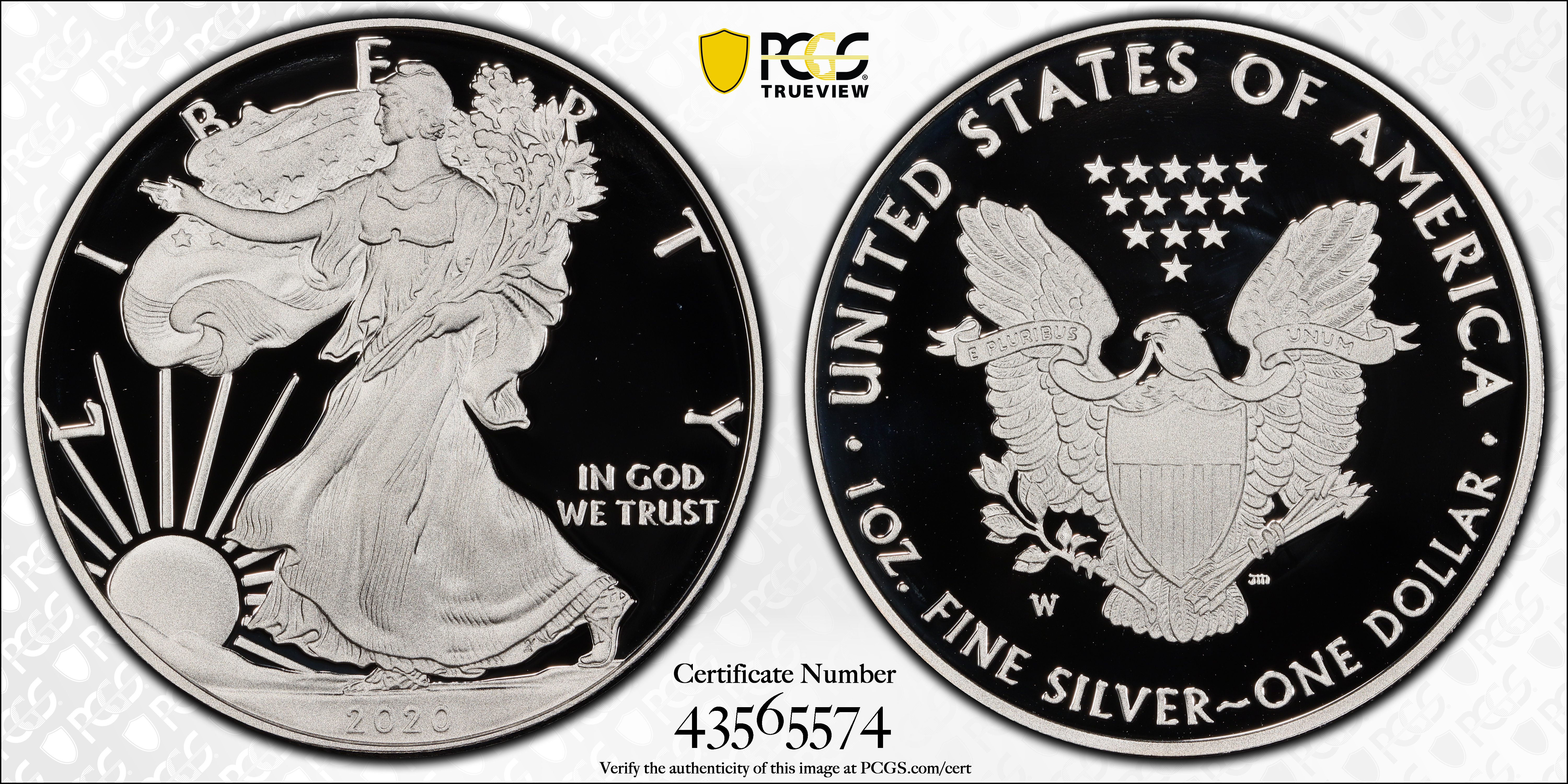 2020-W $1 Silver Eagle Congratulations Set, DCAM PR70DCAM Certification #43565574, PCGS #810541