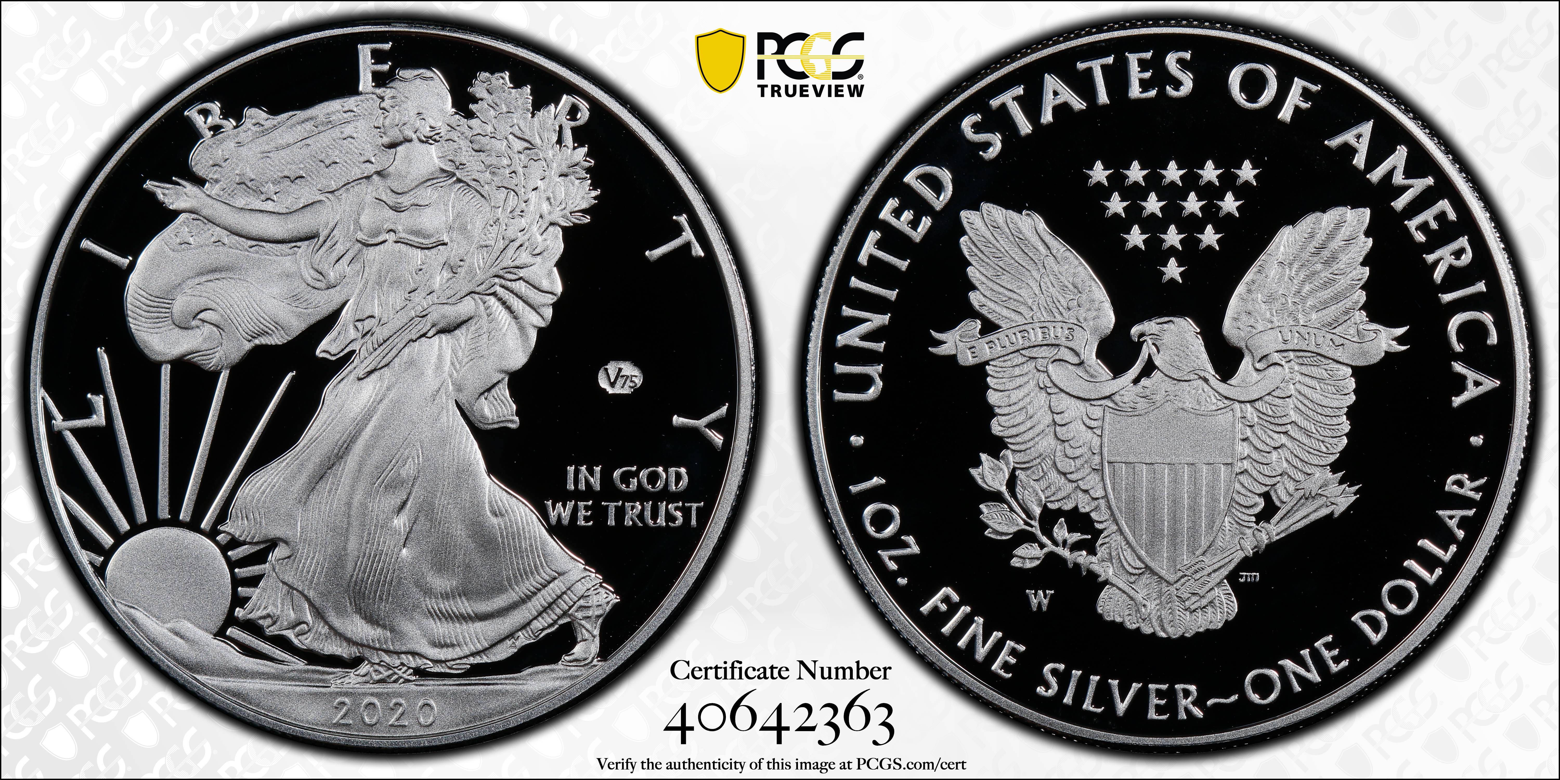 2020-W $1 Silver Eagle - v75 Privy First Strike, DCAM PR70DCAM Certification #40642363, PCGS #819302