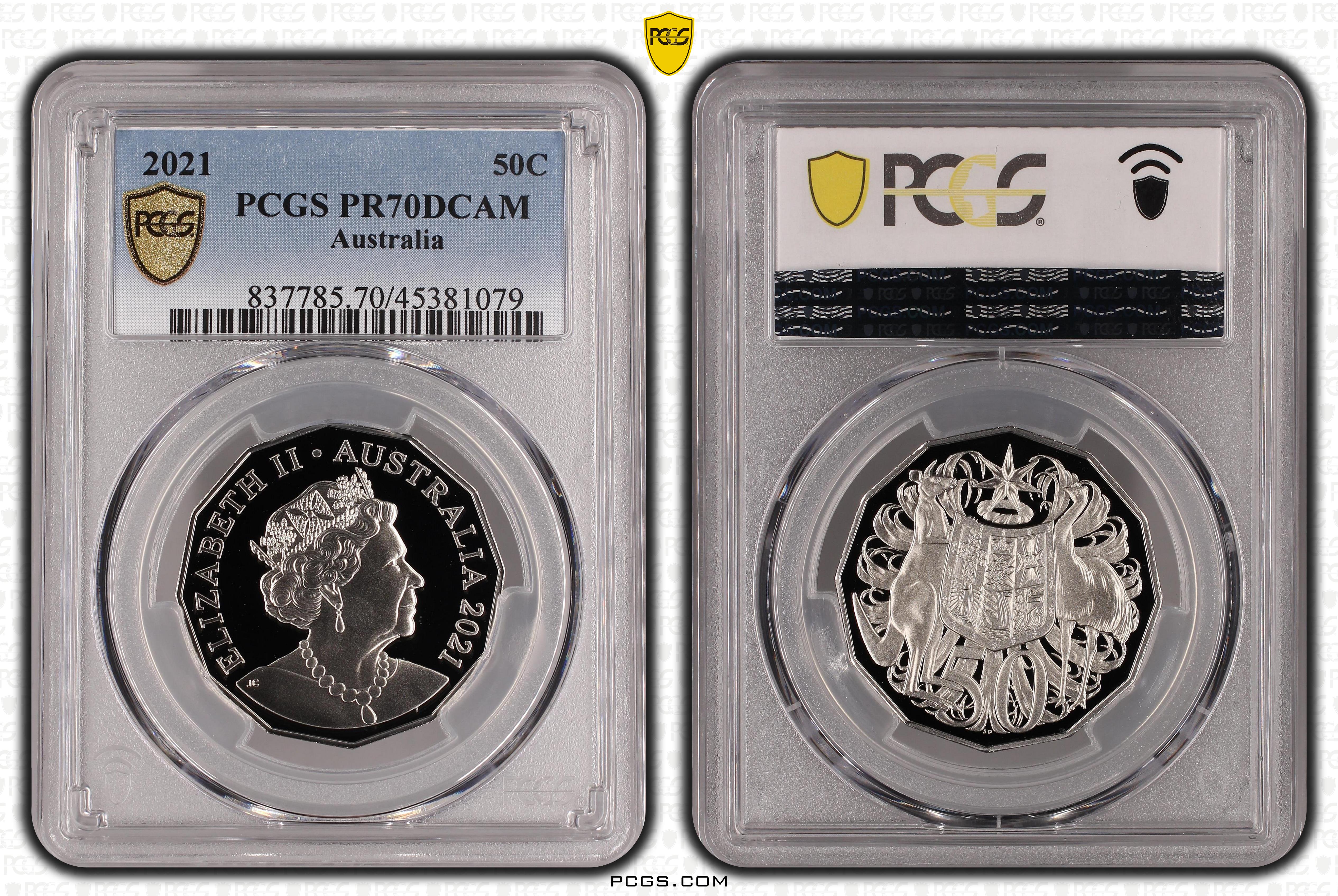 2021 50C, DCAM PR70DCAM Certification #45381079, PCGS #837785