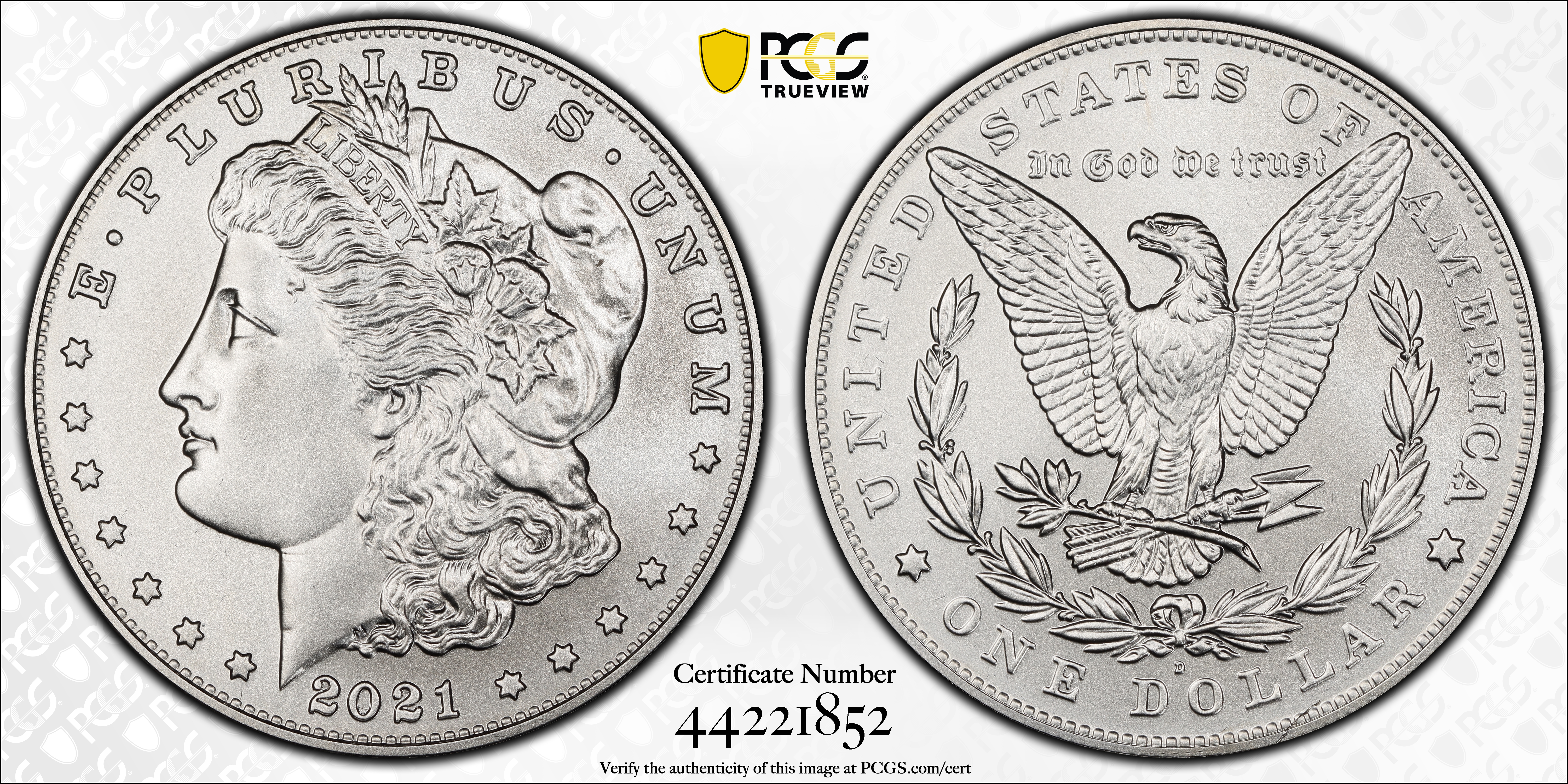 2021-D $1 Morgan Dollar 100th Anniversary First Strike MS69 Certification #44221852, PCGS #877719