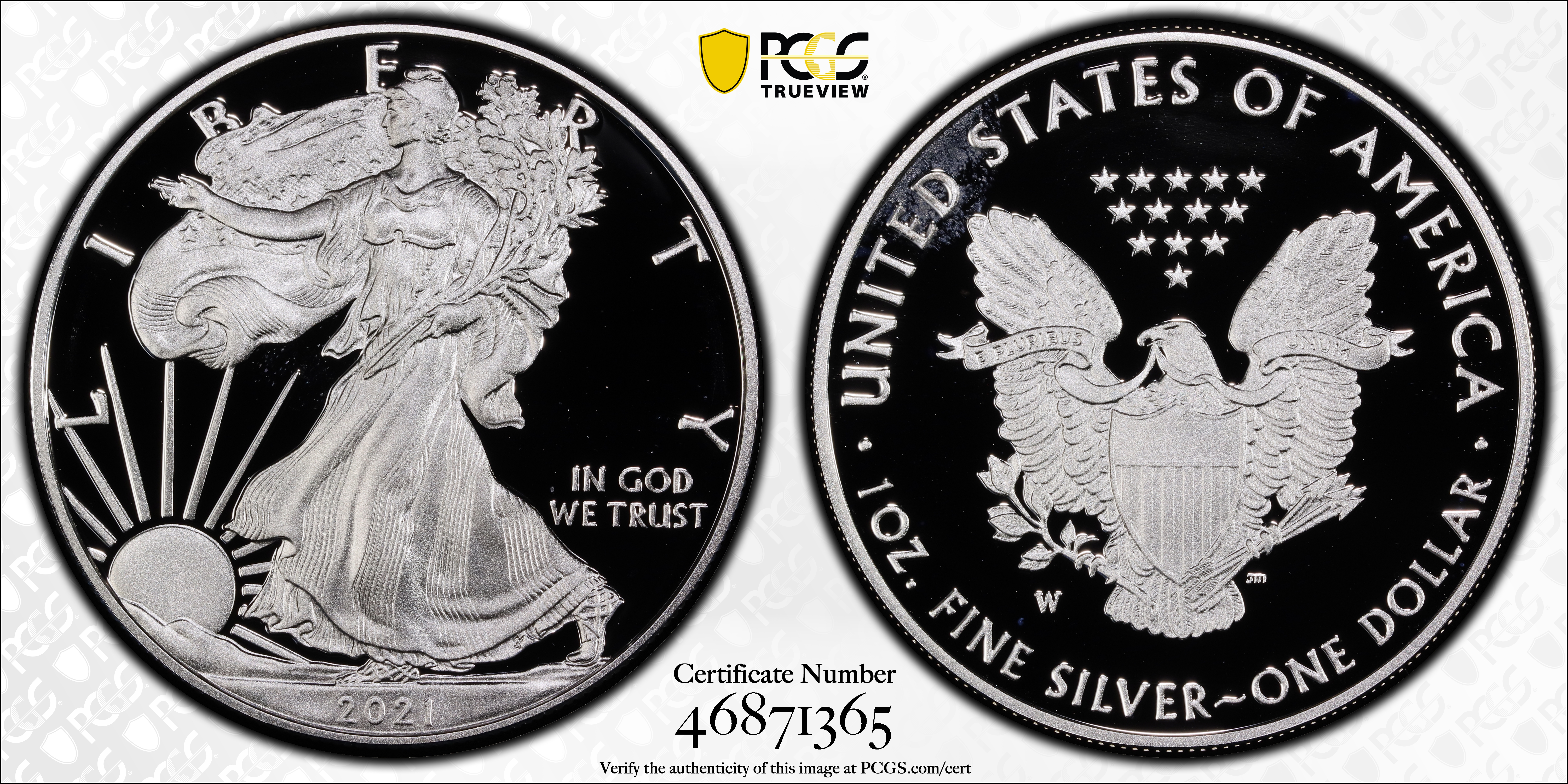 2021-W $1 Silver Eagle - Type 1, DCAM PR69DCAM Certification #46871365, PCGS #854426