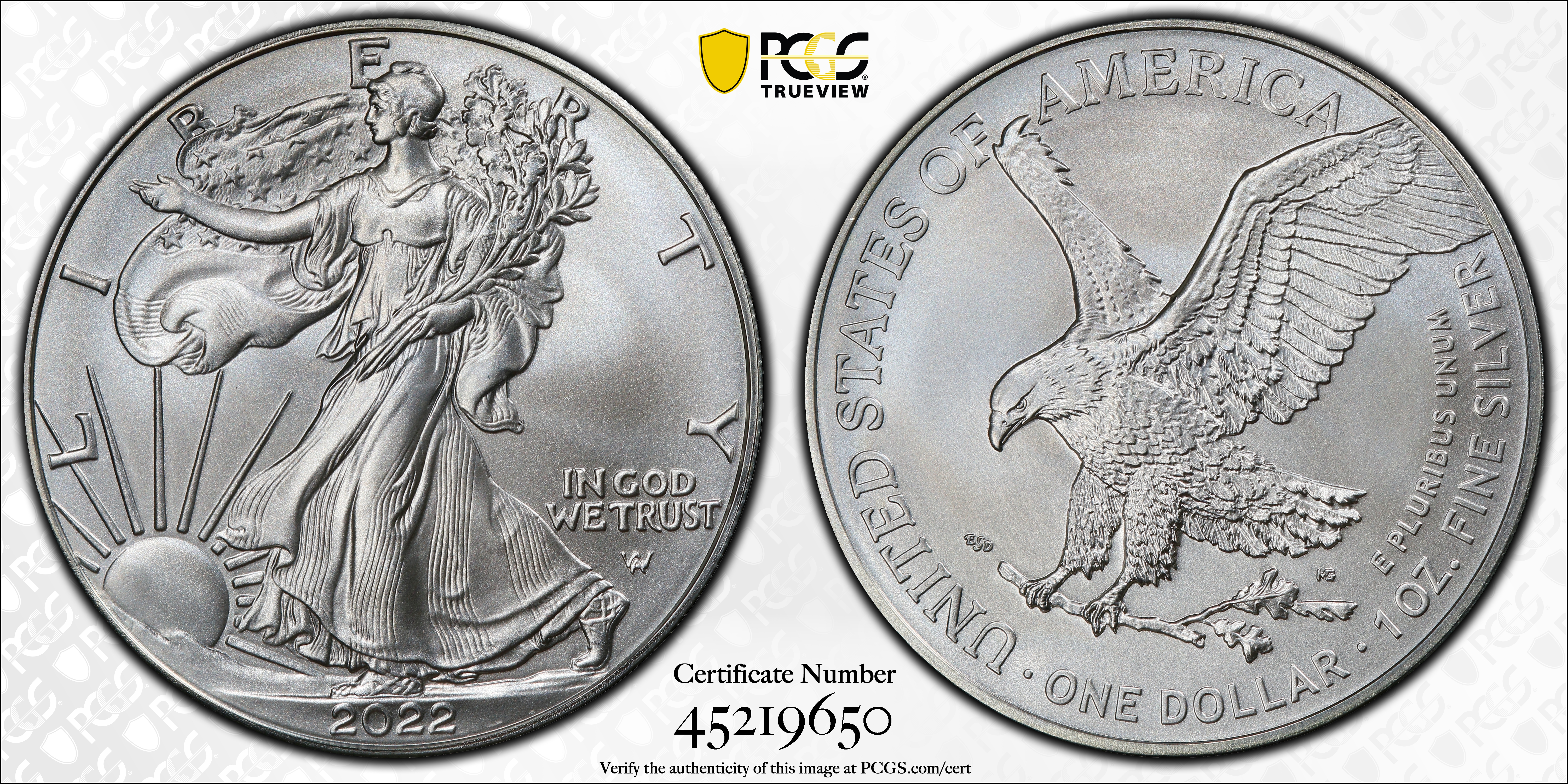 2022 $1 Silver Eagle MS69 Certification #45219650, PCGS #893079