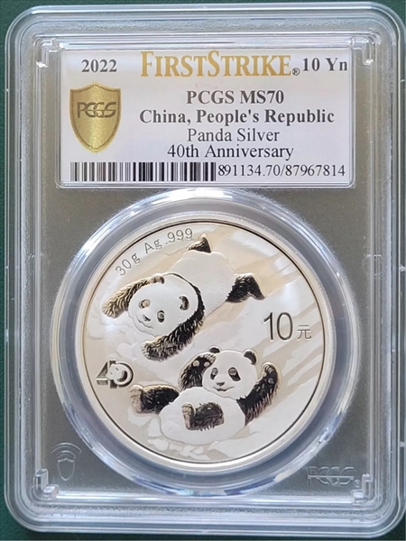 2022 10 Yn Panda Silver 40th Anniversary First Strike MS70 Certification #87967814, PCGS #891134