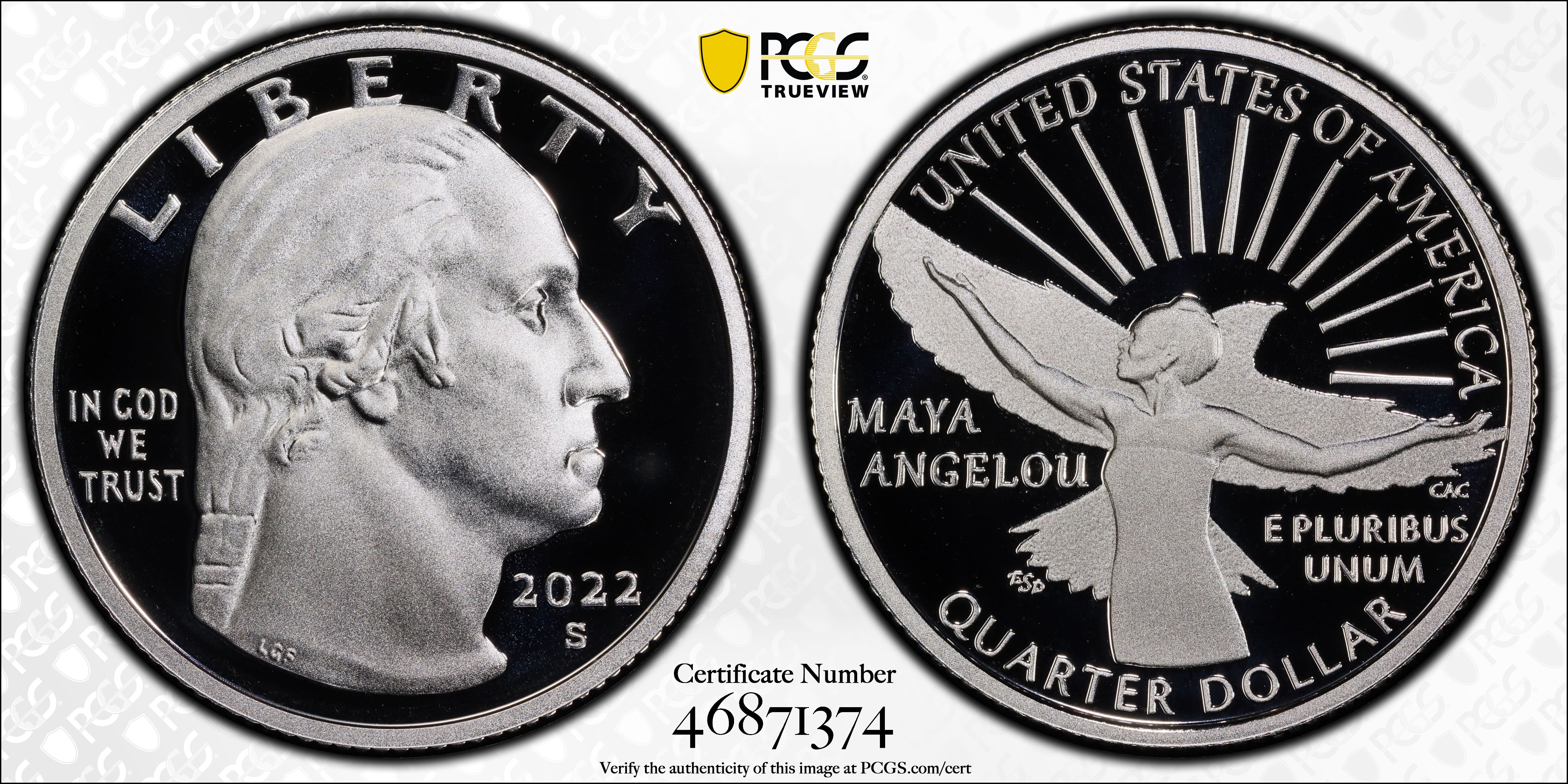 2022-S 25C Maya Angelou-Silver, DCAM PR69DCAM Certification #46871374, PCGS #900690