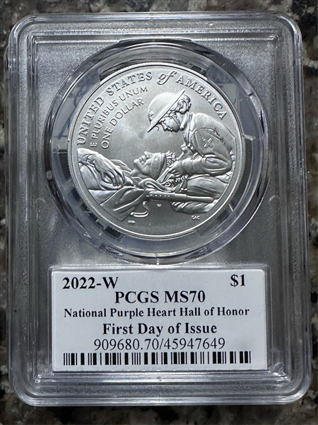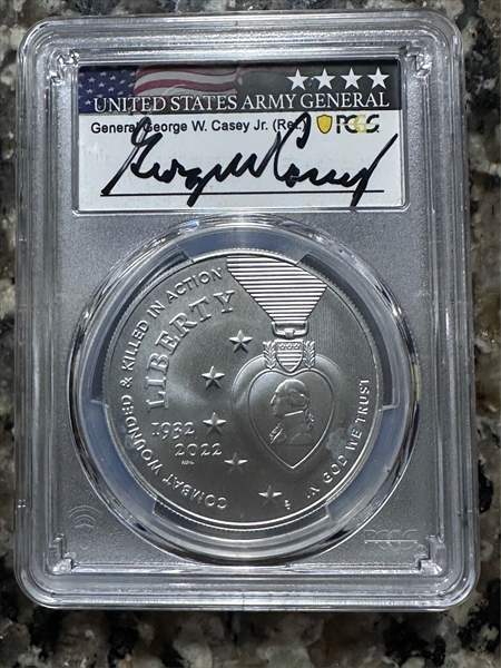 2022-W $1 National Purple Heart Hall of Honor First Day of Issue General George W. Casey Jr MS70 Certification #45947649, PCGS #909680