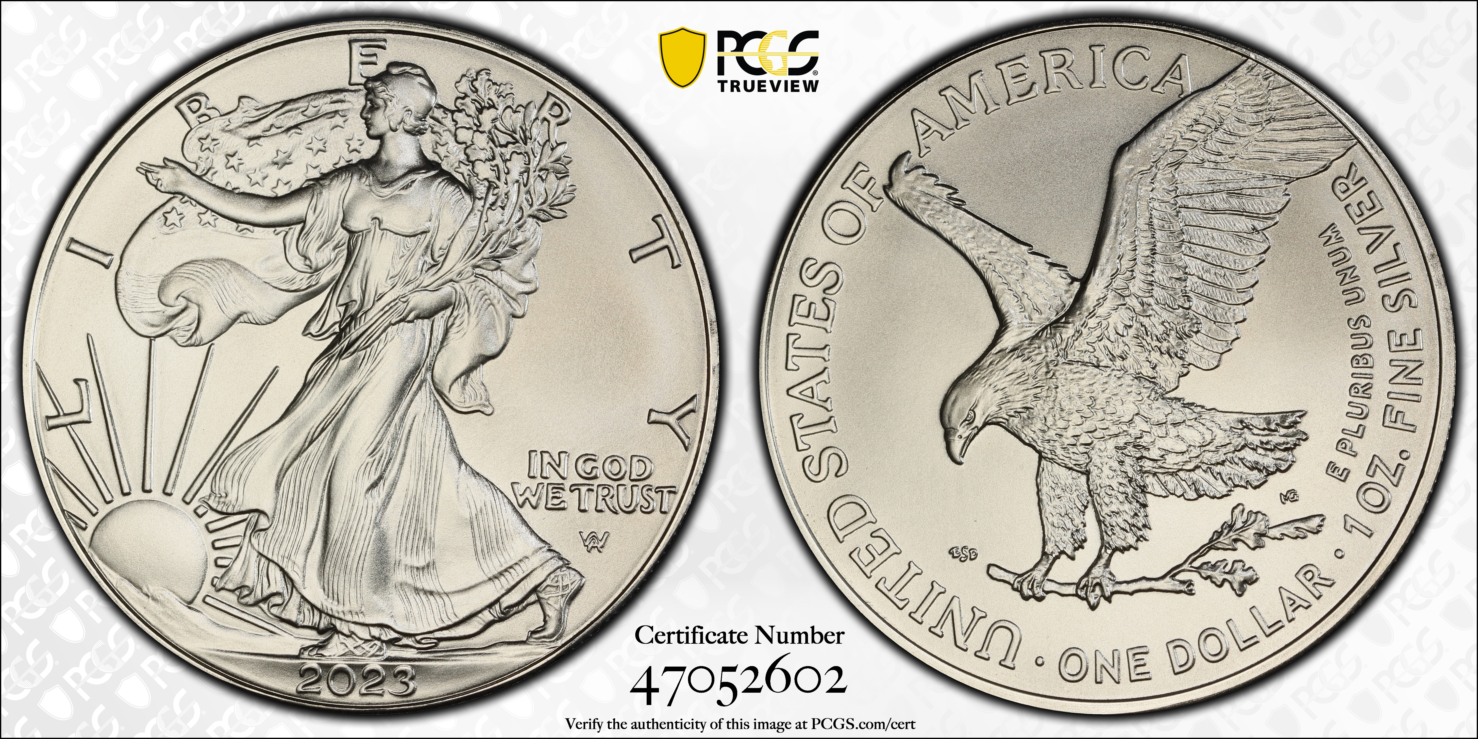 2023 $1 Silver Eagle MS70 Certification #47052602, PCGS #913090