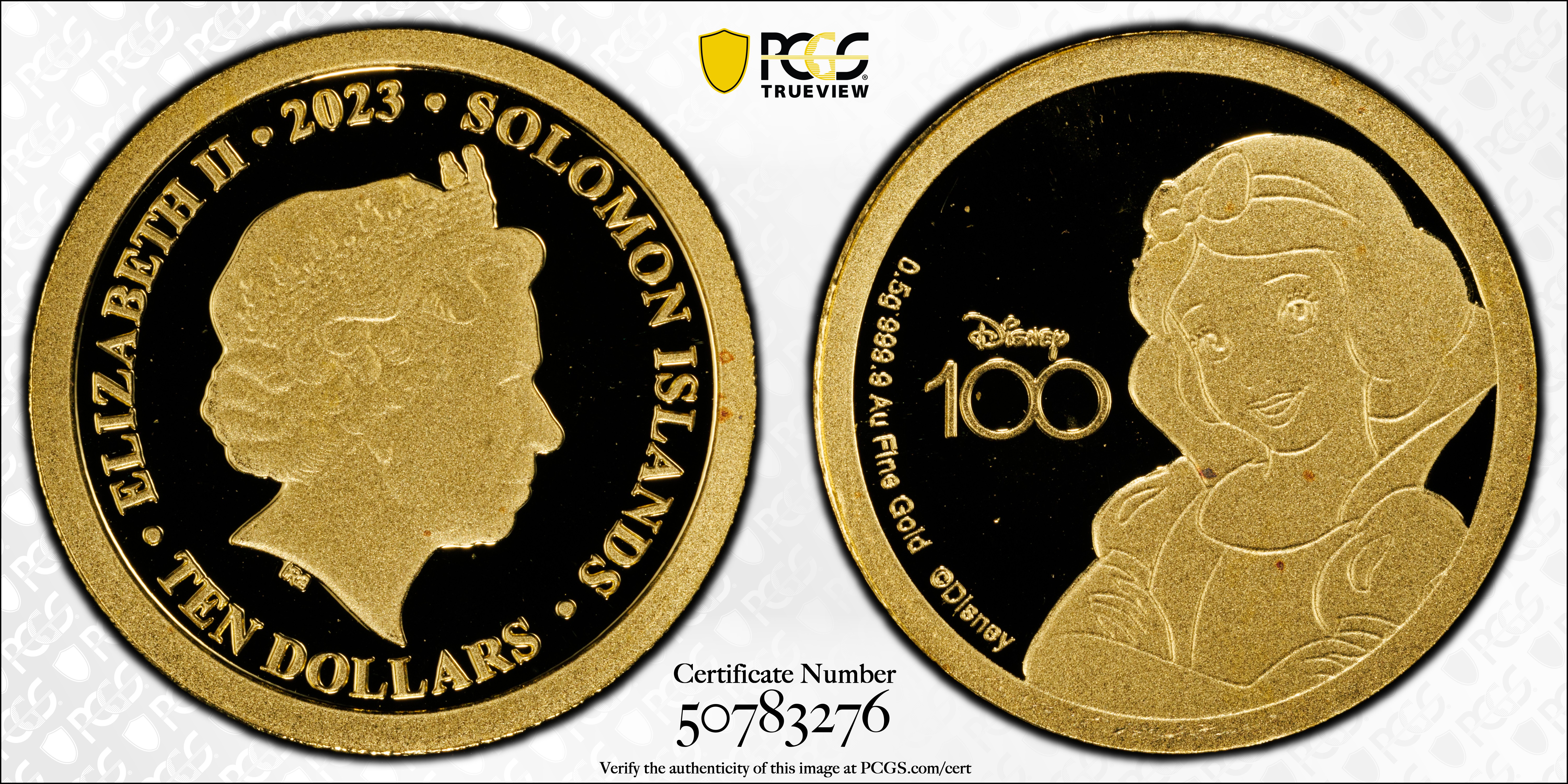 2023 $10 Snow White Au, DCAM PR69DCAM Certification #50783276, PCGS #966487