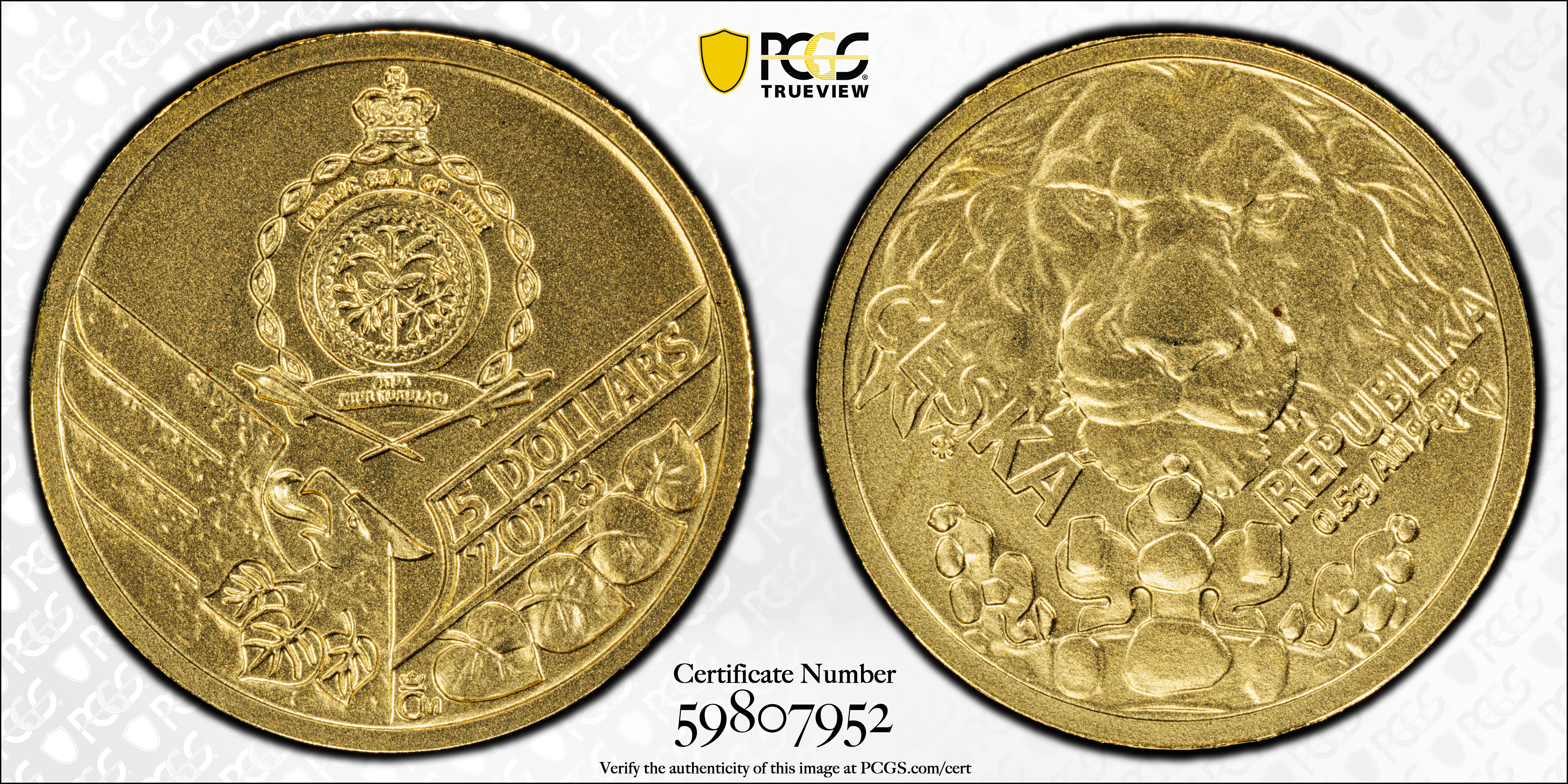2023-CM $5 Czech Lion Au MS70 Certification #59807952, PCGS #939169